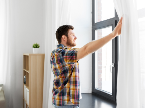 Im Wohnbereich soll es wohlig warm sein, frischer Sauerstoff ist für das Raumklima aber unverzichtbar. Deshalb: Kurz, mehrmals täglich und quer lüften, nur dann zieht die Raumfeuchtigkeit beim Fenster hinaus.