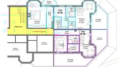 Die beiden Wohnungen wurden mit bewilligtem Baubescheid 2023 in zwei Einheiten unterteilt und könnten grundsätzlich, aus baulicher Sicht, auch wieder zusammengelegt werden. In Summe sind es ca. 118,79 qm Wohnflächen und ca. 58,11 qm Terrassenflächen.