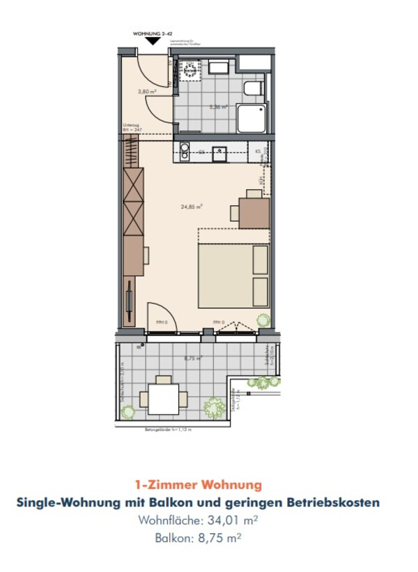 Top 2-42/ 4.OG / 34,0 m² WNF / 8,8 m² Freifläche / 209.000 € Netto KP / 235.000 € Brutto KP