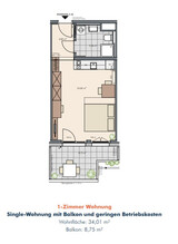 Top 1-31/ 3.OG / 37,4 m² WNF / 11,2 m² Freifläche / 213.000 € Netto KP / 239.000 € Brutto KP