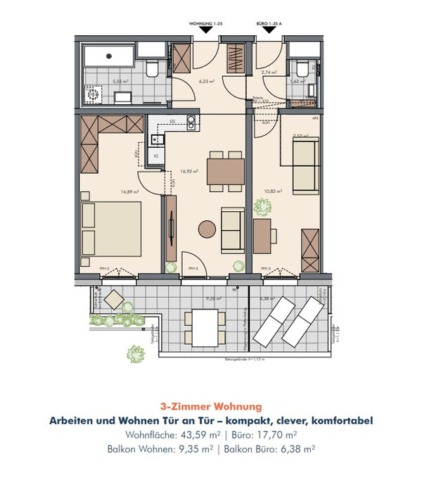 Ein Teil der Einheiten ist speziell für kombinierte Wohn- und Arbeitsmodelle konzipiert. Ob Homeoffice, Praxis, Atelier oder separater Arbeitsbereich mit eigenem Zugang – diese Apartments bieten maximale Flexibilität für zeitgemäße Lebens- und Arbeitsformen.