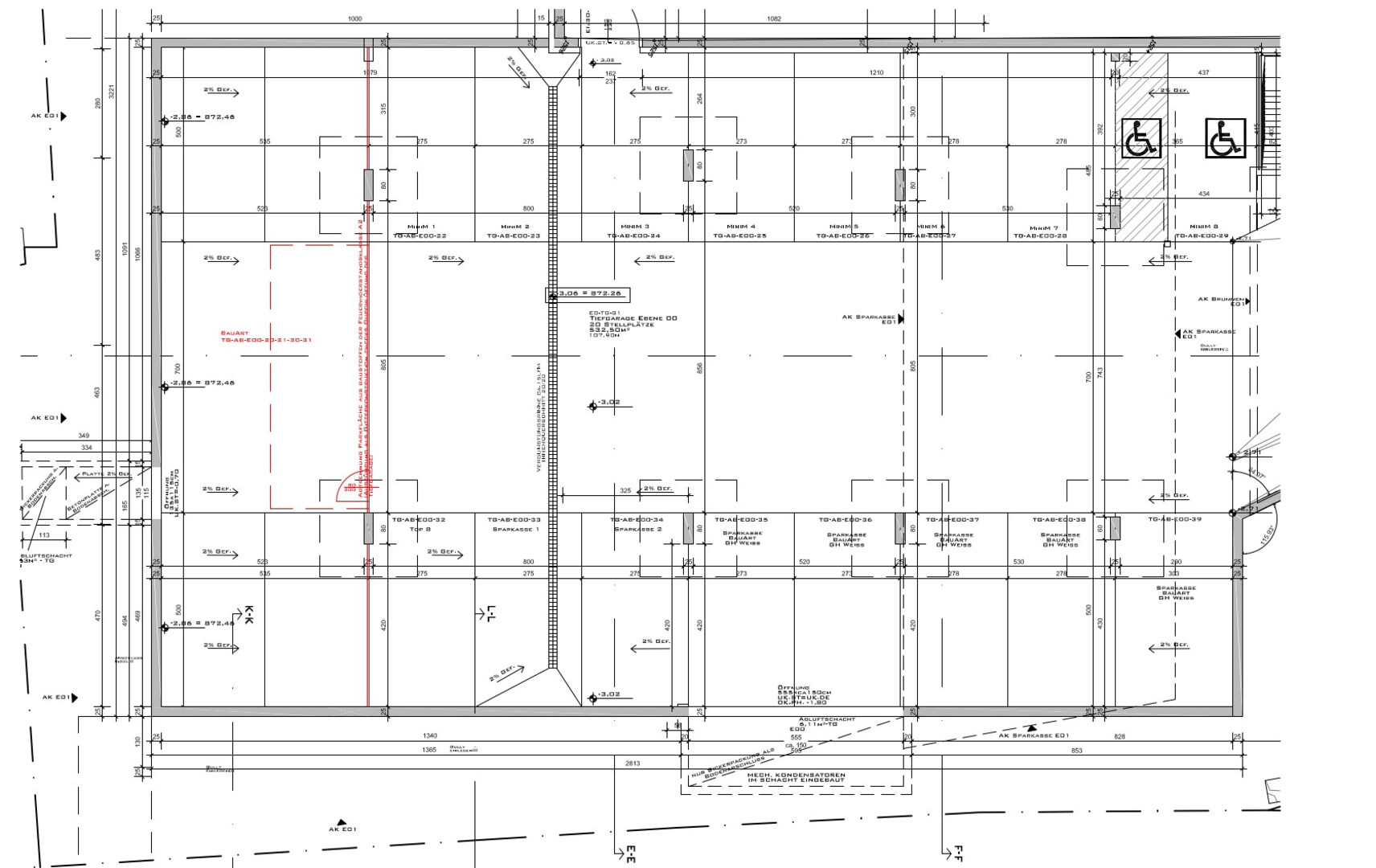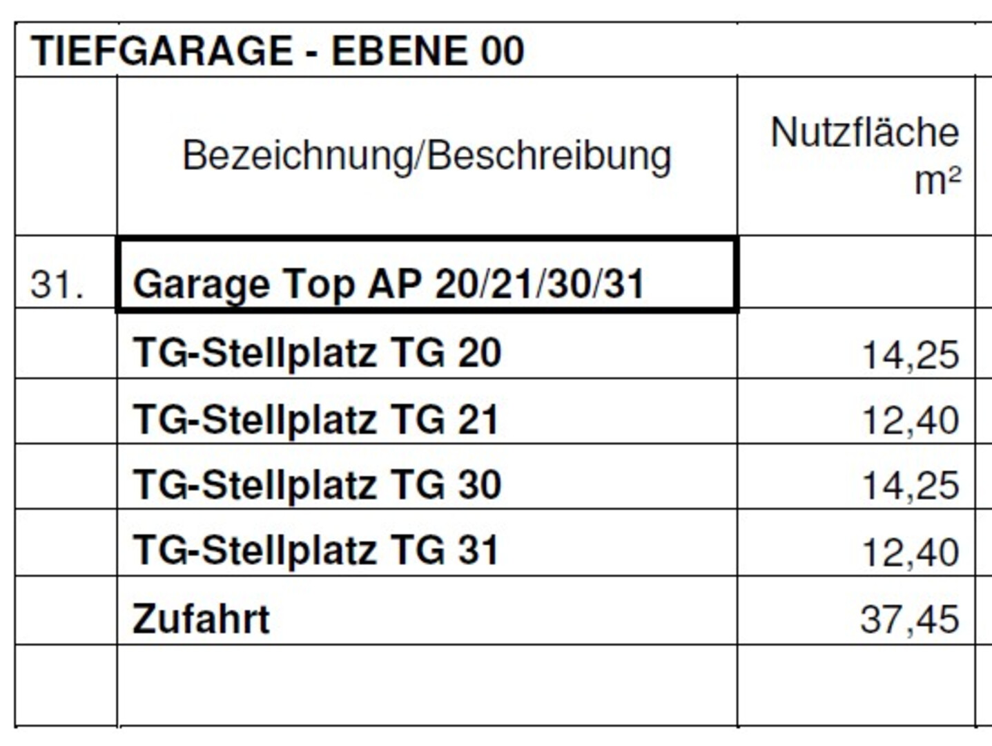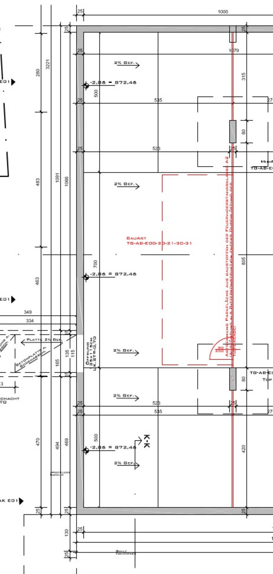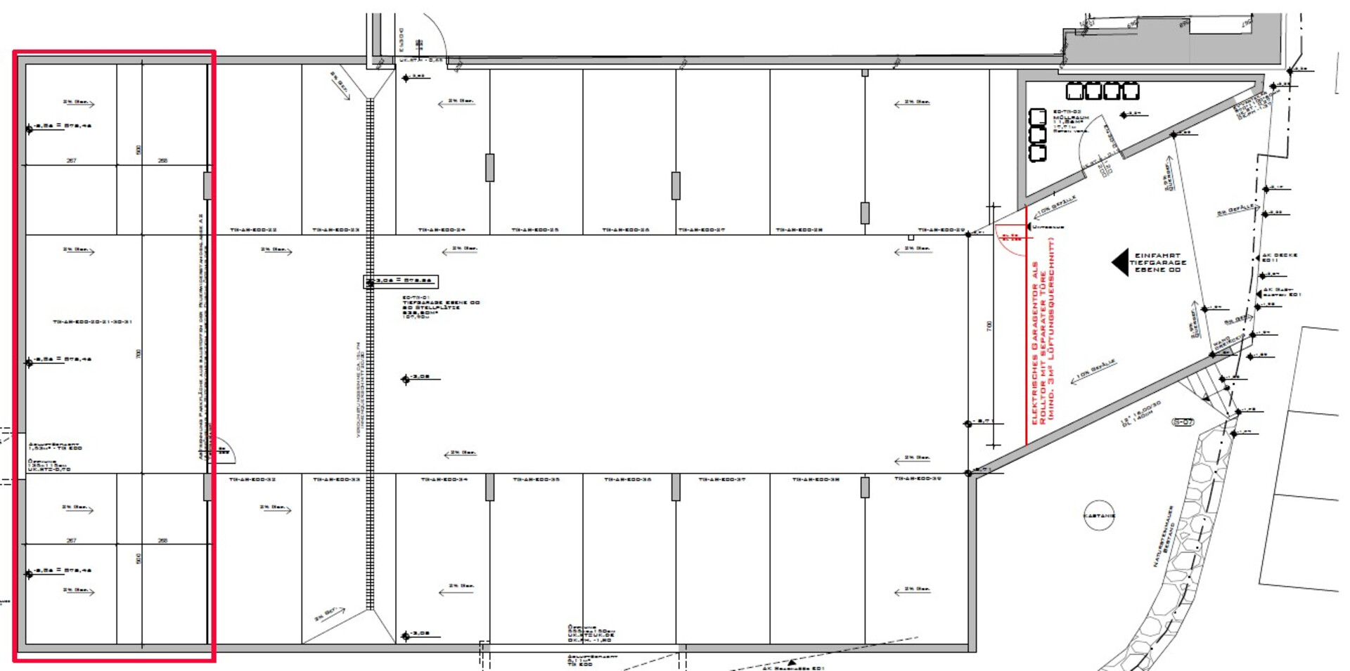 Die gesamte Fläche könnte von der restlichen Tiefgarage abgetrennt werden (auf einen ausreichenden Lüftunsquerschnitt ist zu achten.).