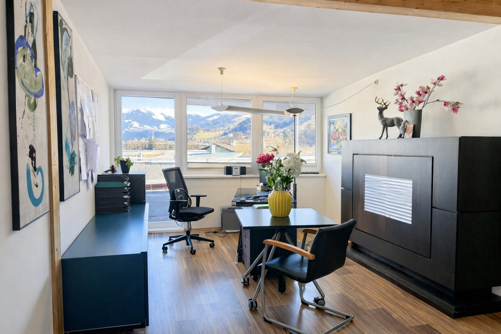 Durch die klare Struktur und die angenehme Größe eignet sich das Büro ideal für Tätigkeiten, bei denen eine repräsentative und zugleich funktionale Arbeitsumgebung gefragt ist, wie beispielsweise für Steuerberater, Ziviltechniker, Unternehmensberater, Versicherungsagenturen oder Dienstleister im kreativen und planerischen Bereich.