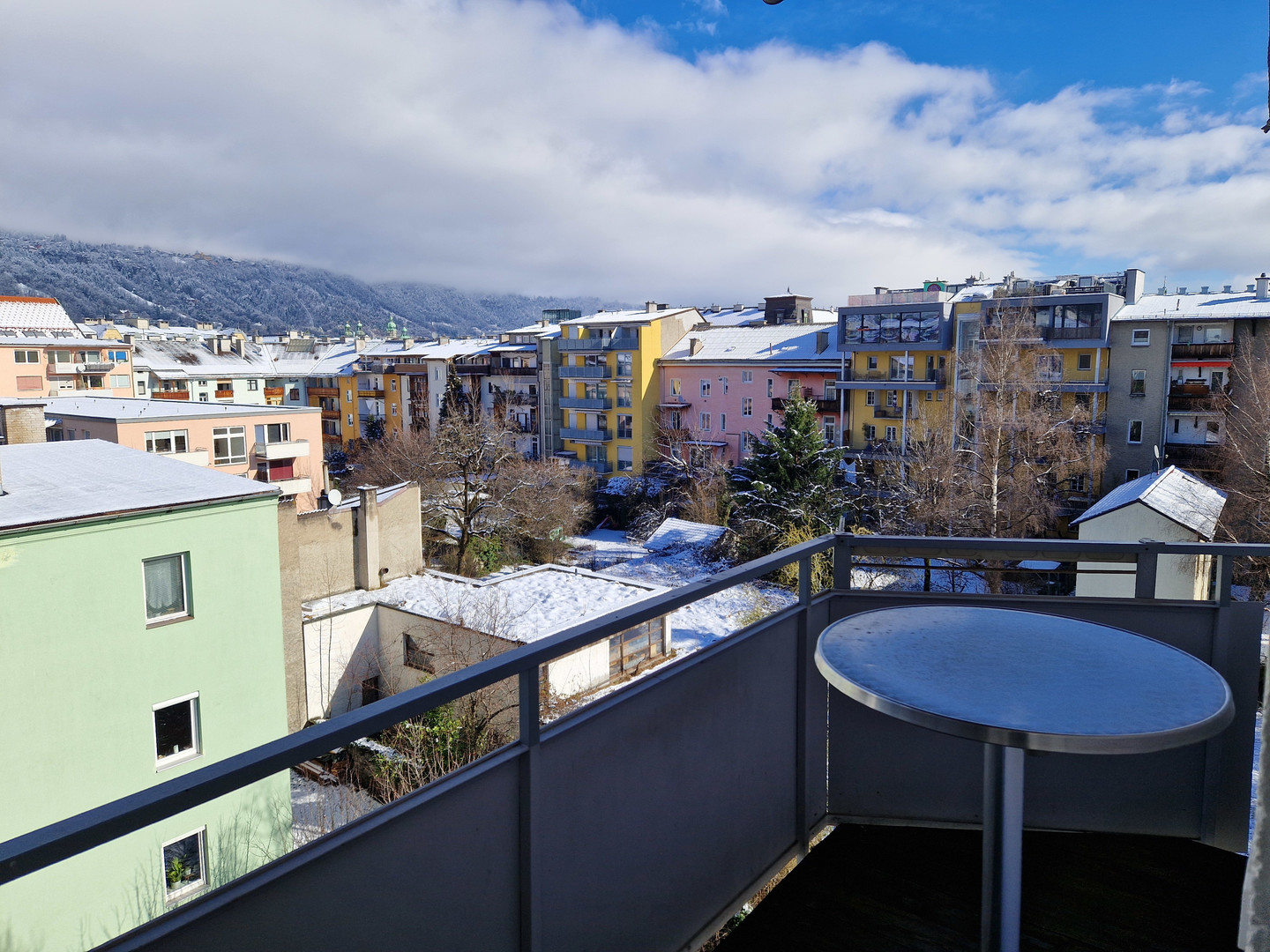 Das Büro verfügt weiters über zwei Balkone mit Blick über die Stadt und die Nordkette, welche ebenfalls dazu einladen, während der Arbeit Energie zu tanken.