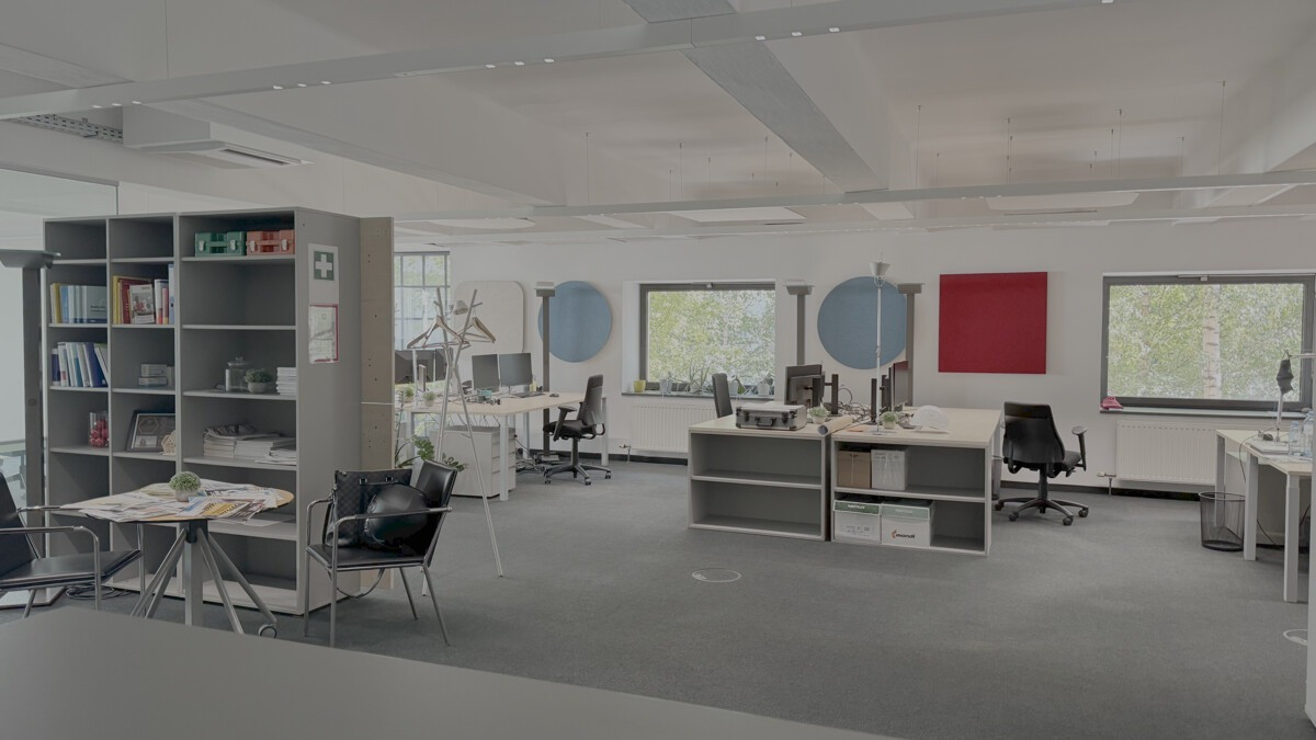 Es wird darauf hingewiesen, dass die abgebildete Büroeinrichtung, sowie die Lampen und Akustikpaneele ebenfalls mitgemietet werden können.