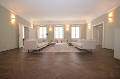 Sämtliche Räume verfügen über großzügige Fensterflächen, die in Kombination mit der beeindruckenden Deckenhöhe von ca. 3,20 Meter ein einzigartiges und offenes Raumgefühl schaffen.