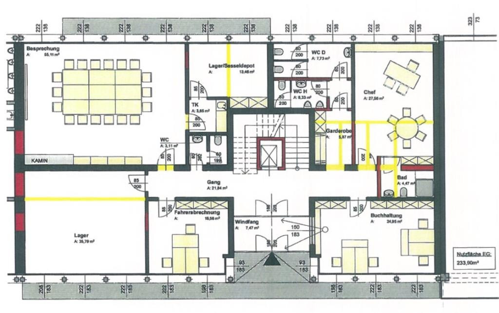 - Erdgeschoss mit ca. 85 m² bis ca. 200 m² sind Büros möglich