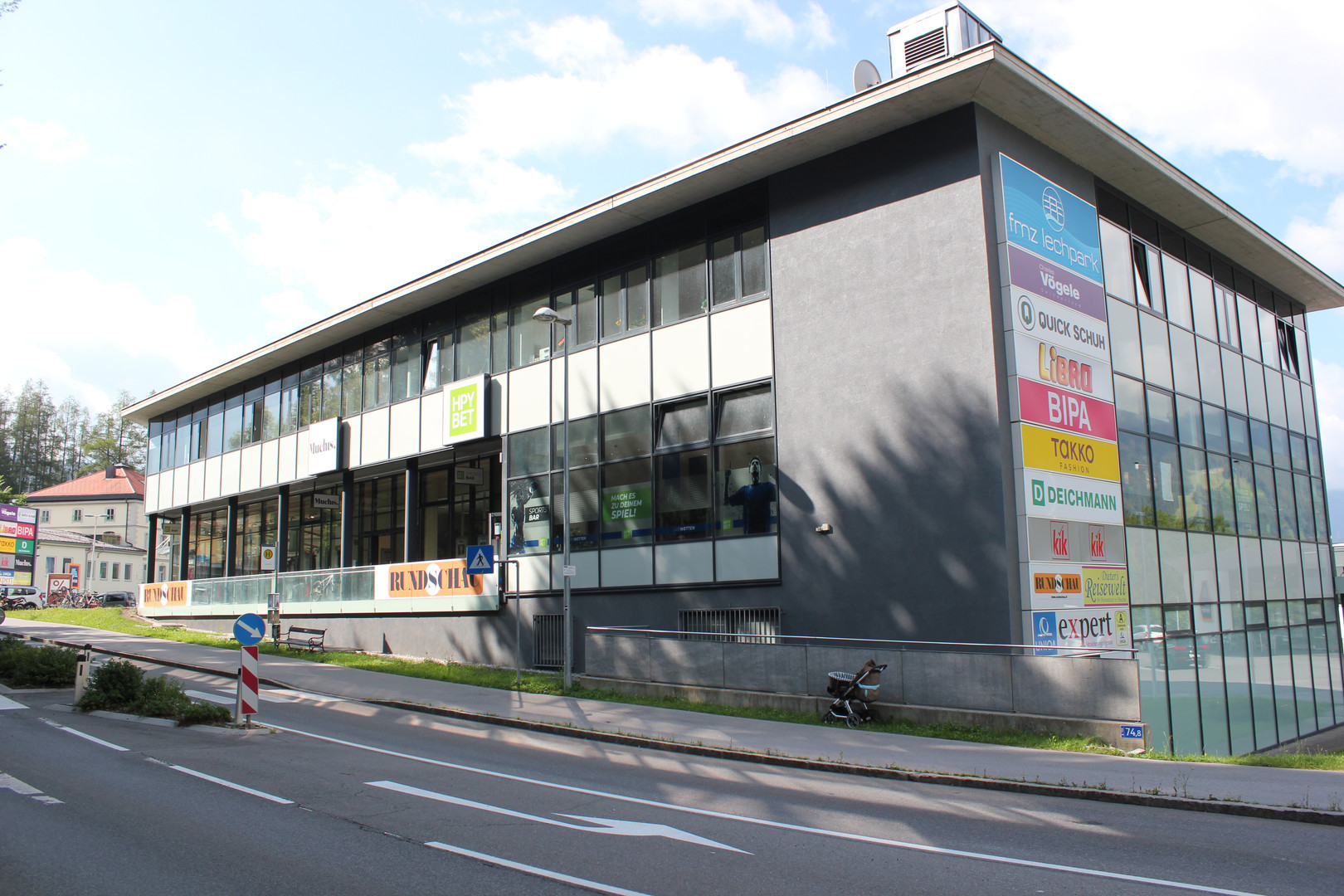 Im Fachmarktzentrum sind auf 4.500 m2 Geschäftsflächen die Firmen Tedi, Schuhaus Nipp, Würth, Bipa, Kik, Deichmann und Takko angesiedelt.