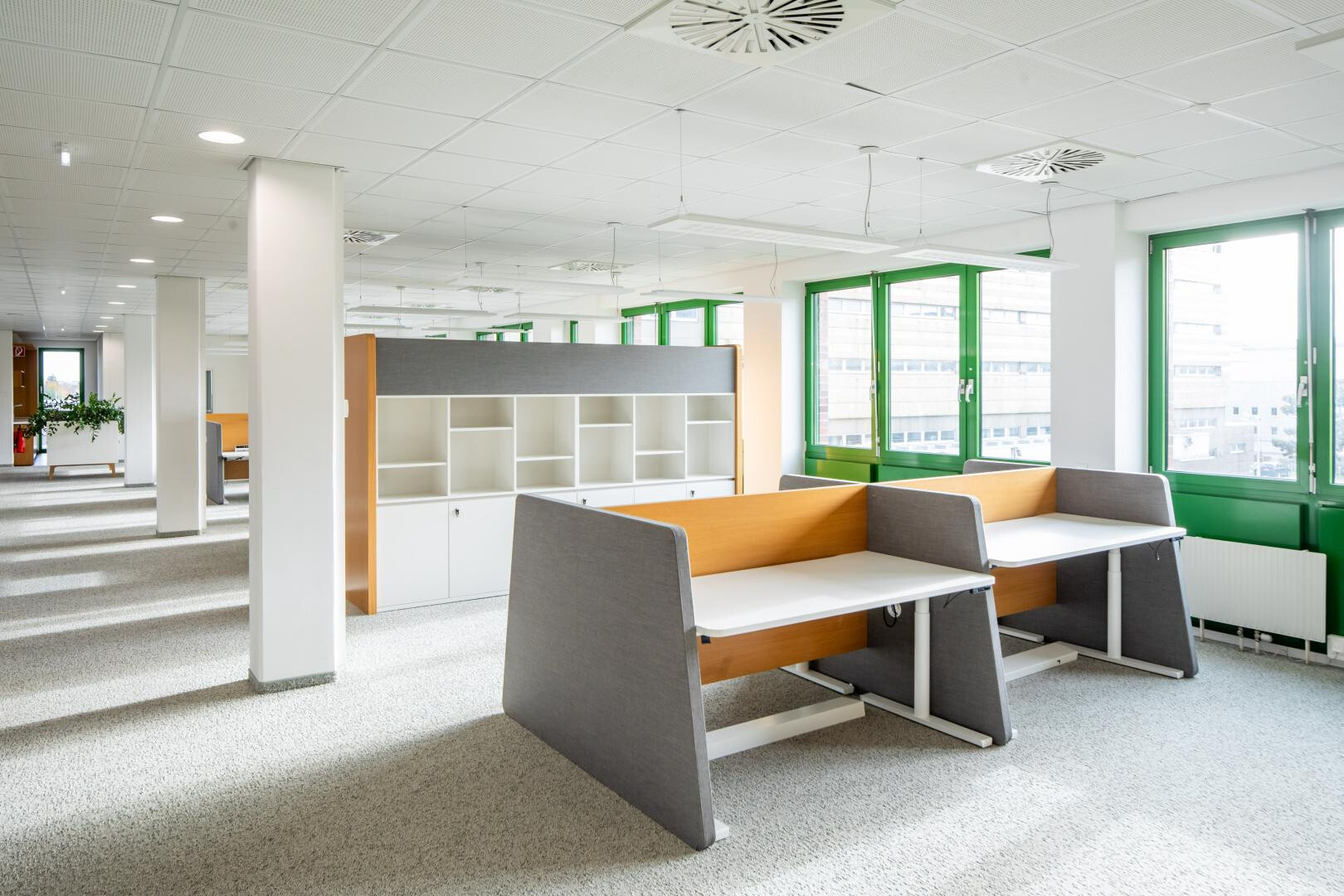 Zur Verfügung stehen Einzelbüros, Büros mit etwa 120 m² sowie Großraumbüros im Ausmaß von bis zu ca. 1.200 m².