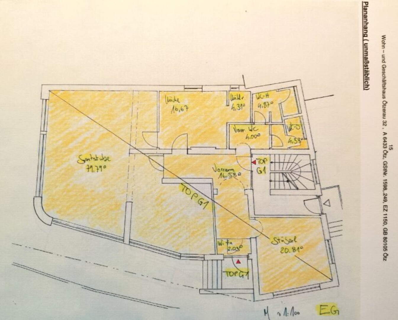 - Lagerflächen zu Top G1 im Ausmaß von ca. 72,38 m²