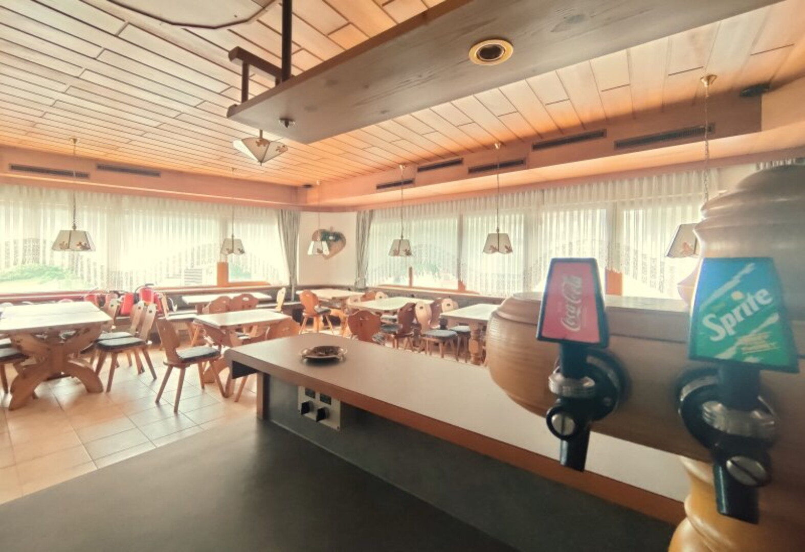 Die Gastronomieeinheit (Top G 1) im Erdgeschoß ist ca. 153 m² groß und besitzt nördlich, direkt von der Landesstraße aus, einen eigenen Zugang. Diese Einheit gliedert sich in ein Gastlokal mit Schankbereich, das für bis zu 70 Personen Platz bietet und eine Küche. Die moderne Gastronomieküche ist vollständig möbliert und sofort nutzbar. Zusätzlich gehören zur Einheit Lagerflächen im Ausmaß von ca. 72 m 2, Kühlraum integriert.