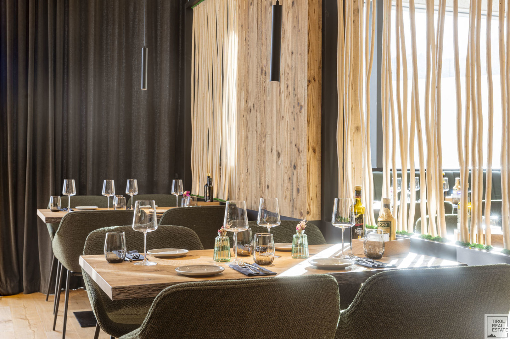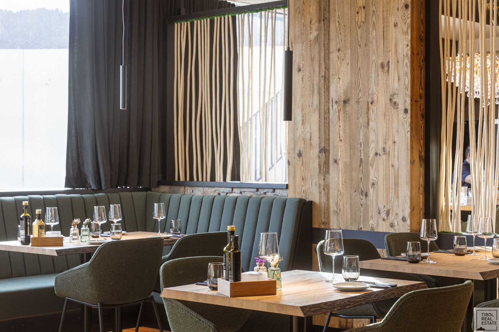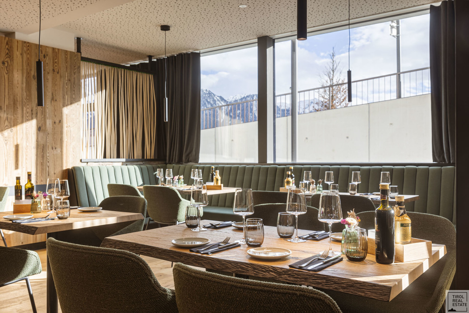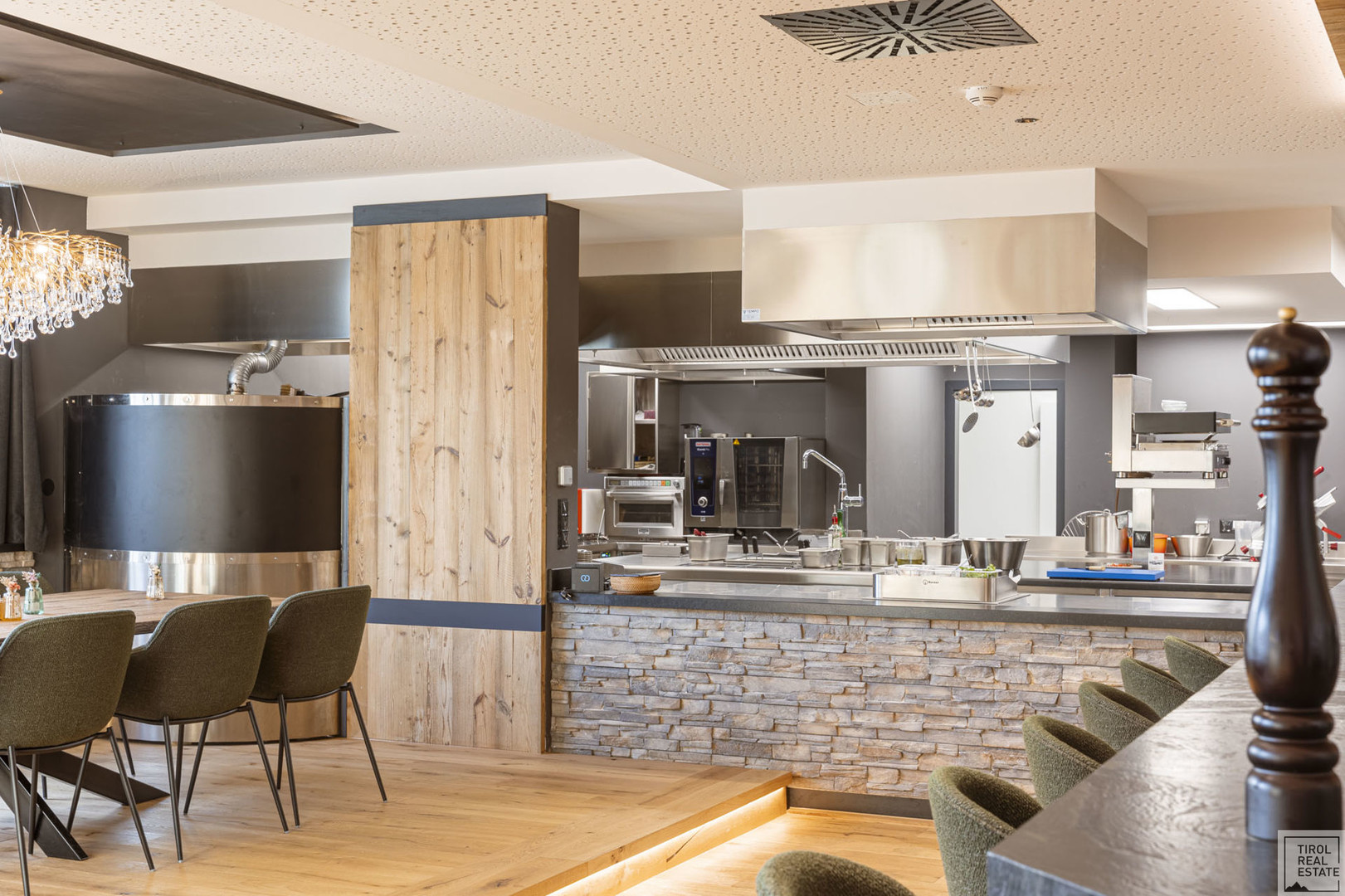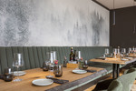 Der stilvolle Mix aus modernem Design und alpenländischer Gemütlichkeit: Massivholz-Möbel in Eiche, gepolsterte Sitzbänke, sanfte Lichtakzente und ein durchdachtes Raumkonzept. Ob Fine Dining, moderne Bistroküche oder Eventgastronomie – hier lässt sich jede Idee stilvoll umsetzen.