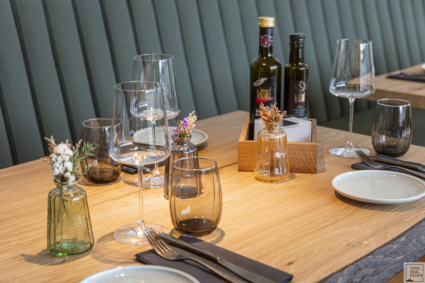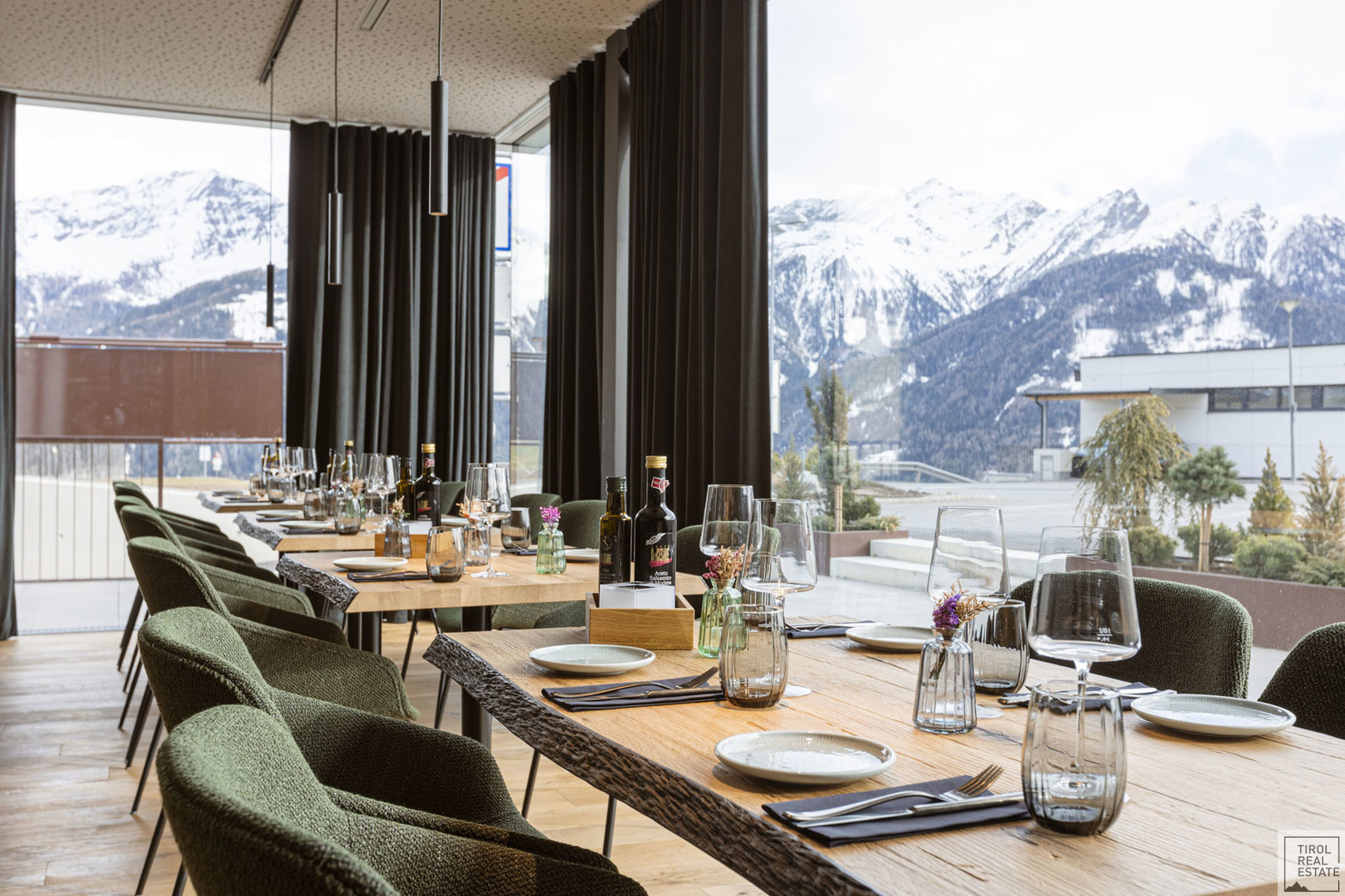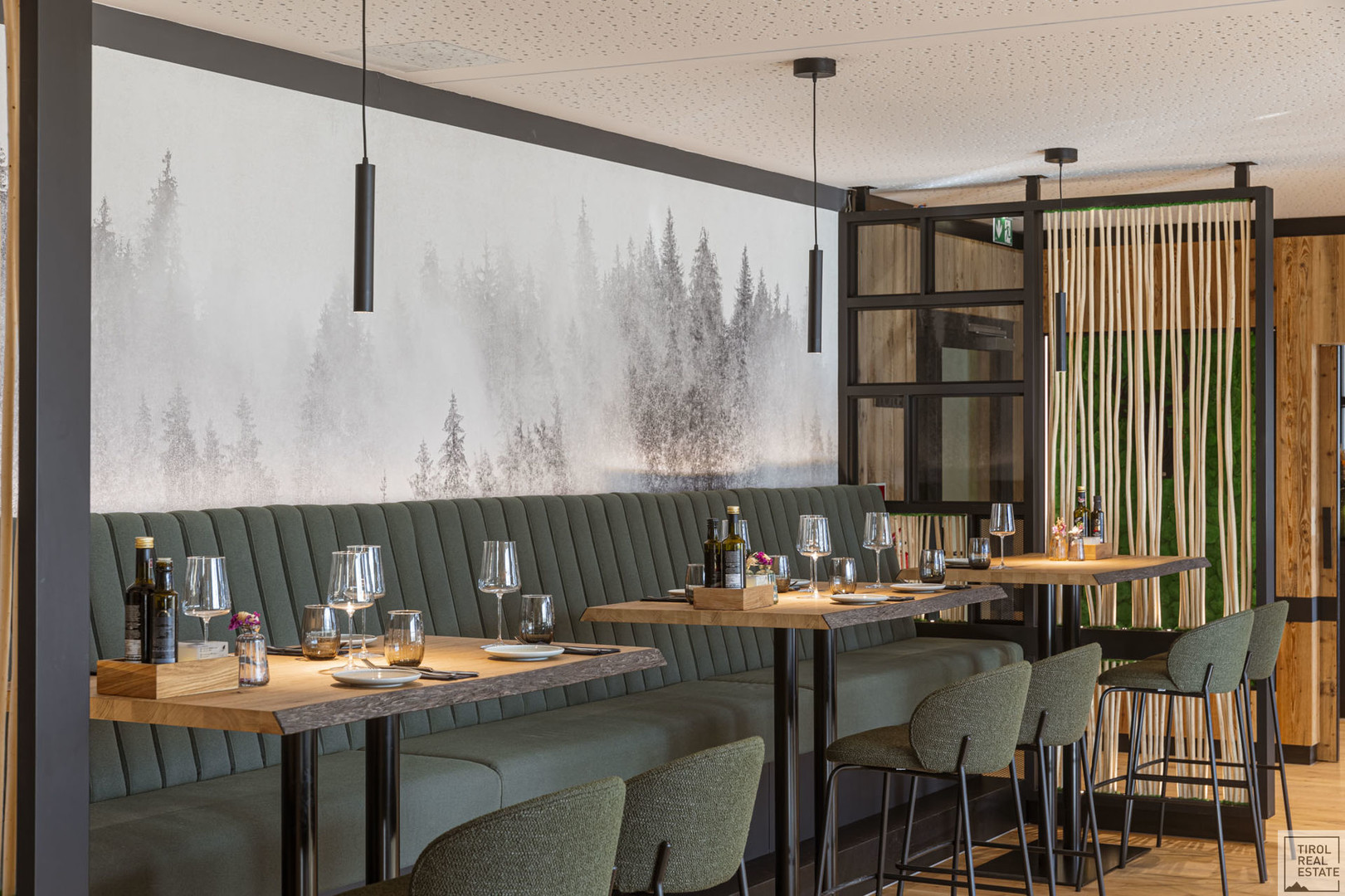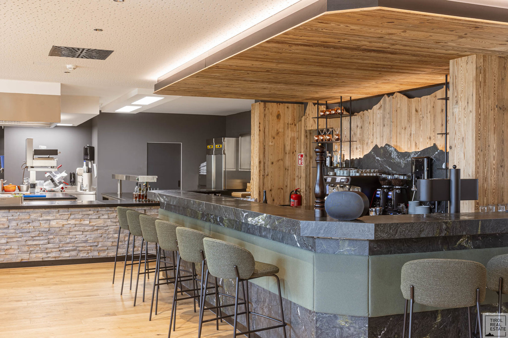Der stilvolle Mix aus modernem Design und alpenländischer Gemütlichkeit: Massivholz-Möbel in Eiche, gepolsterte Sitzbänke, sanfte Lichtakzente und ein durchdachtes Raumkonzept. Ob Fine Dining, moderne Bistroküche oder Eventgastronomie – hier lässt sich jede Idee stilvoll umsetzen.