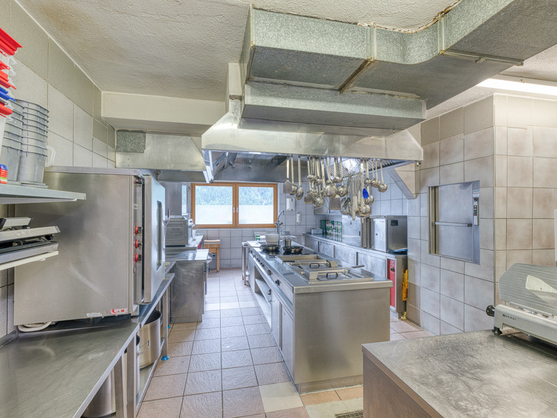 Die hier angebotene Immobilie wurde 1963 als Wohnhaus mit Fremdenpension errichtet und laufend in immer neu dazukommenden Ausbaustufen erweitert und als Ferienhotel mit bis zu 54 Gästezimmern geführt. Die letzte bauliche Erweiterung erfolgte 2006 mit dem Abbruch des Dachstuhls beim 3. OG, sowie einem Neubau, der mit zwei Vollgeschossen genehmigt und realisiert wurde. 2012 kamen noch Balkone hinzu. Insgesamt bestehen also heute sechs Vollgeschosse, die mittels eines zentralen Treppenhauses samt Personenaufzug miteinander verbunden sind. Die unterschiedlichen Ebenen sind, durch die unterschiedlichen Baustufen, teilweise in versetzter Ausführung gestaltet. Der Hoteleingang wird über einen Windfang über die Straßenebene erschlossen. Hier befinden sich auch der Empfangsbereich mit Rezeption, das Restaurant mit Hotelbar, Buffet- und Servicebereich, Wintergarten, sowie die Küche, in der ausreichend Platz gegeben ist, um das gesamte Ferienhotel mit Halbpension zu führen. Schi-/Schuhraum, Lüftungszentrale, Wäscheraum sowie der Zugang zur Tiefgarage mit plangemäßen 27 Stellplätzen sind hier ebenso angeordnet. Im Untergeschoß besteht auch noch ein Gastlokal, die Bar „Grotte“, die man auch von außen aus erreichen kann, heute jedoch nicht mehr betrieben wird. Diese wurde gerne und gut besucht und könnte auch wieder in Betrieb genommen werden und bieten eine zusätzliche Einnahmequelle oder um diese zu verpachten. Laut Baubescheid bestehen insgesamt 43 Doppelzimmer, 3 Einzelzimmer und eine Wohnung für die Hausbesitzer. Genutzt werden jedoch anstatt der Privatwohnung, 3 Gästezimmer und anstelle von Teilen der Wellnessanlage 3 weitere Gästezimmer. Zudem befinden sich im 3. Obergeschoß und im Dachgeschoß aufgrund geänderter Grundrissgestaltung anstatt der bewilligten 14 insgesamt 15 Zimmer (3. Obergeschoß), sowie anstatt der bewilligten 8 insgesamt 9 Zimmer (Dachgeschoß). Zusammengefasst bestehen also abweichend von der baubehördlichen Bewilligung somit 54 Gästezimmer, die laut Auskunft zum Teil für die Unterbringung von Personal genutzt werden. Hinsichtlich der geänderten Bauführung bzw. Nutzung wird empfohlen, alle erforderlichen behördlichen Bewilligungen zu erwirken, sollten diese weiter in dieser Form betrieben werden. Das asphaltierte Parkdeck in Stahlbetonbauweise wurde 2007 auf dem zweiten darunter liegenden Grundstück errichtet und bietet Platz für etwa 13 Pkws. Das Grundstück ist aber überwiegend unbebaut und grenzt direkt an die Skiabfahrt. Ein Raum maximiertes Objekt mit Potenzial in vielseitiger und zentraler Panorama-Lage.