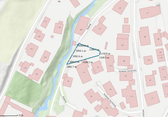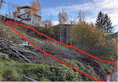Durch die Form des Grundstücks in moderater Hanglage eignet es sich ideal für ein Einfamilien- oder Doppelhaus, eine grobe Planung (ohne Einreichung) für eine kleine Wohnanlage mit fünf Einheiten kann auf Wunsch übermittelt werden. Die Zufahrt ist von unten.