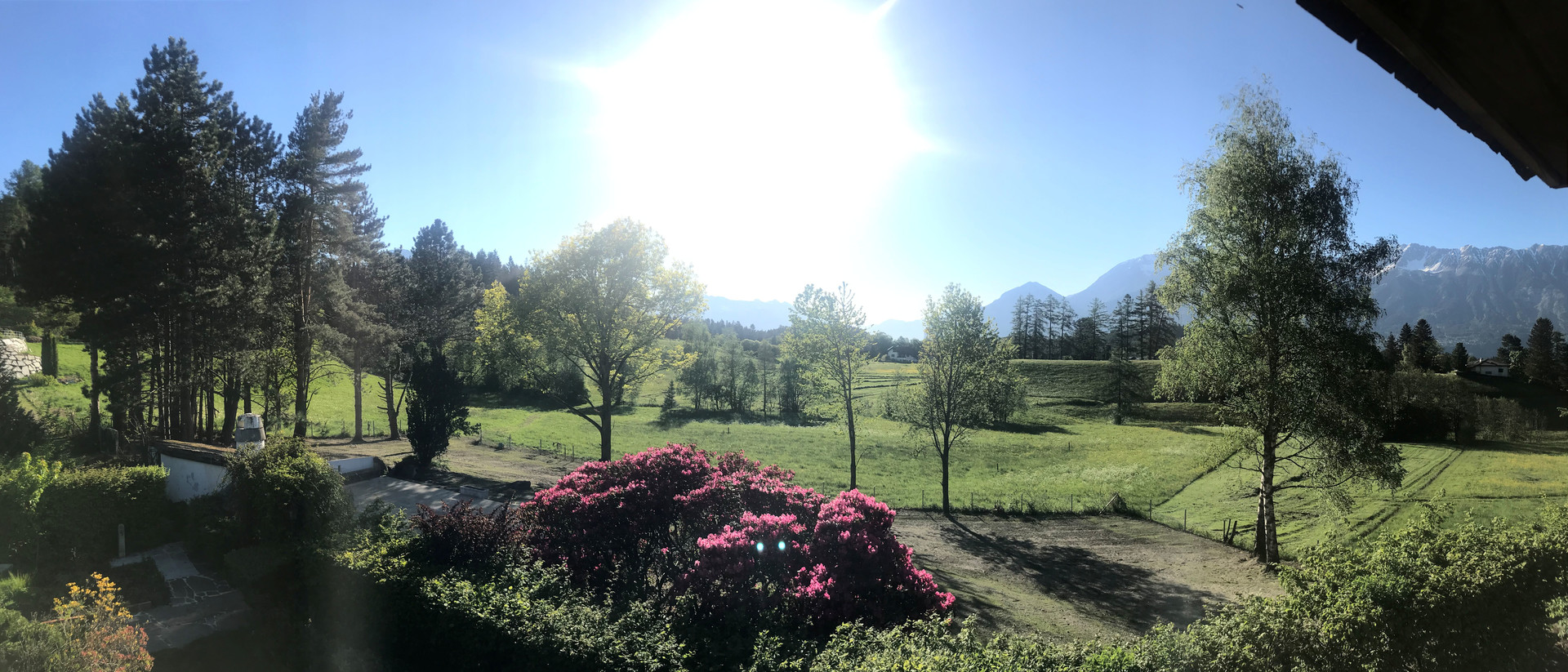 Das Grundstück liegt in erhöhter Lage mit Blick auf den weltbekannten Lanserhof. Ein wunderschöner alter Baumbestand befindet sich östlich des Grundstückes, außerdem wird es von einem atemberaubenden Ausblick auf die Bergwelt des Inntales umrahmt.