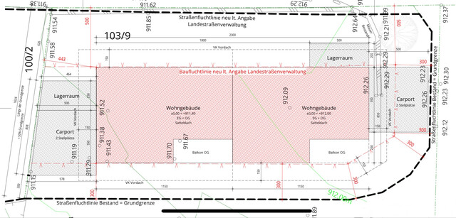 Es besteht die Möglichkeit das gesamte Grundstück oder eine Hälfte für ein Doppelhaus zu erwerben. Der Planentwurf dient rein als Muster, natürlich kann eine eigene Planung vorgenommen werden (in Abstimmung mit den Bebauungsrichtlinien für den Bebauungsplan).