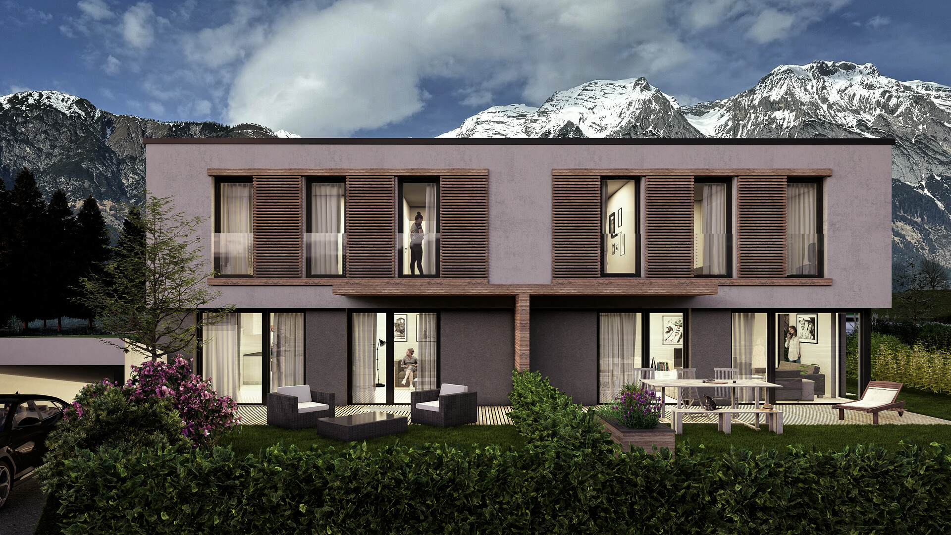 Die umliegende Bergwelt mit der schönen Aussicht und die hohe Lebensqualität der ruhigen Wohngegend in Schönegg runden den Gesamteindruck der Doppelhäuser ab.