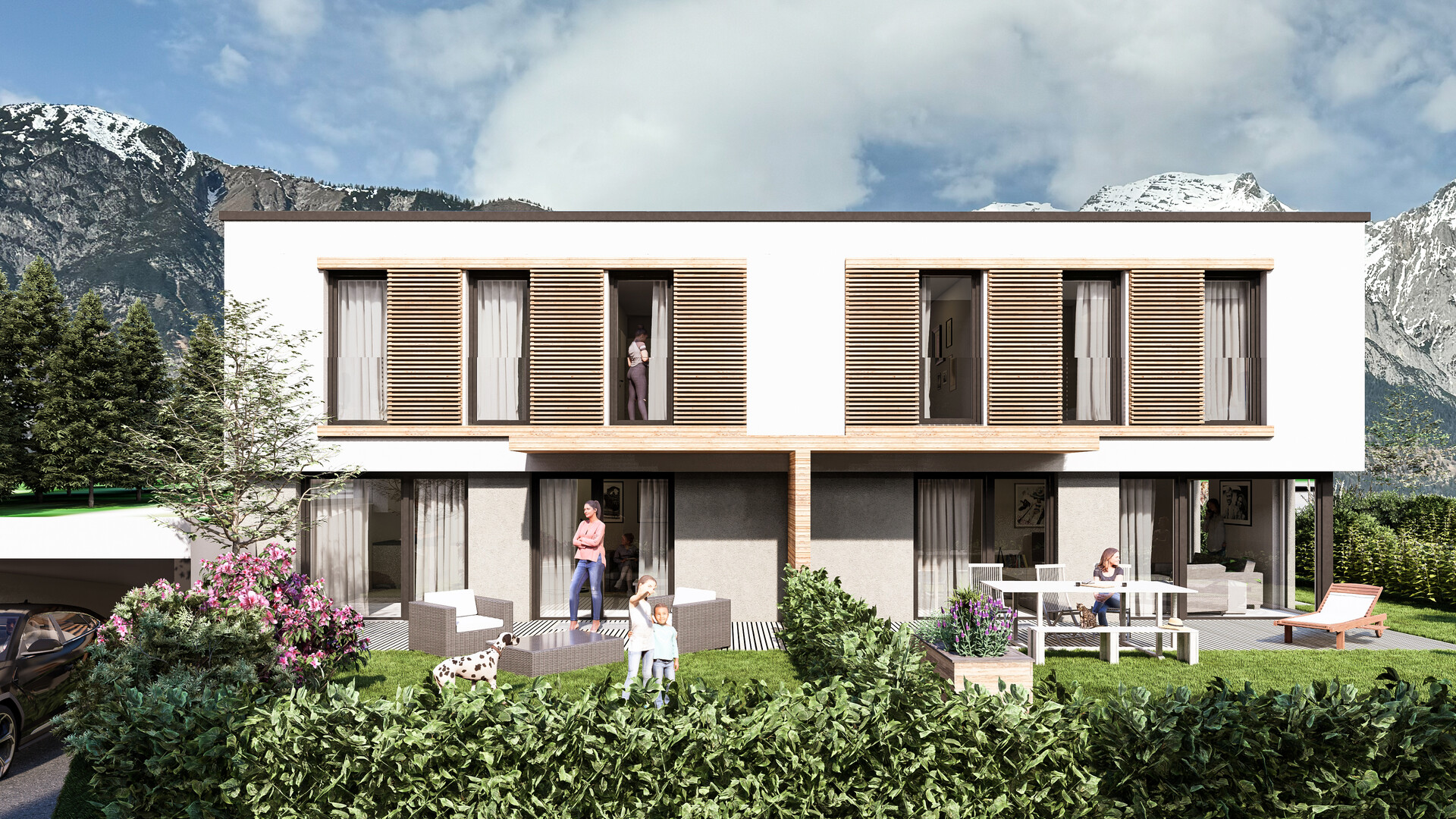 Die modern gebauten Doppelhäuser liegen im Stadtteil Schönegg in Hall. In unmittelbarer Nähe befindet sich die UMIT Tirol und das Landeskrankenhaus Hall. Geschäfte des täglichen Bedarfs sind fußläufig erreichbar. Die vorhandene Infrastruktur und die Anbindung an das öffentliche Verkehrsnetz sind sehr gut. Die Autobahnauffahrt Hall Mitte erreichen Sie in wenigen Fahrminuten. Innsbruck liegt zudem in unmittelbarer Nähe. Die angrenzenden Fußwege führen direkt in das Naherholungsgebiet von Hall, Thaur und Absam. Das Stadtzentrum von Hall ist schnell zu erreichen und lädt mit seinen vielen Cafés und Restaurants zum Verweilen ein.