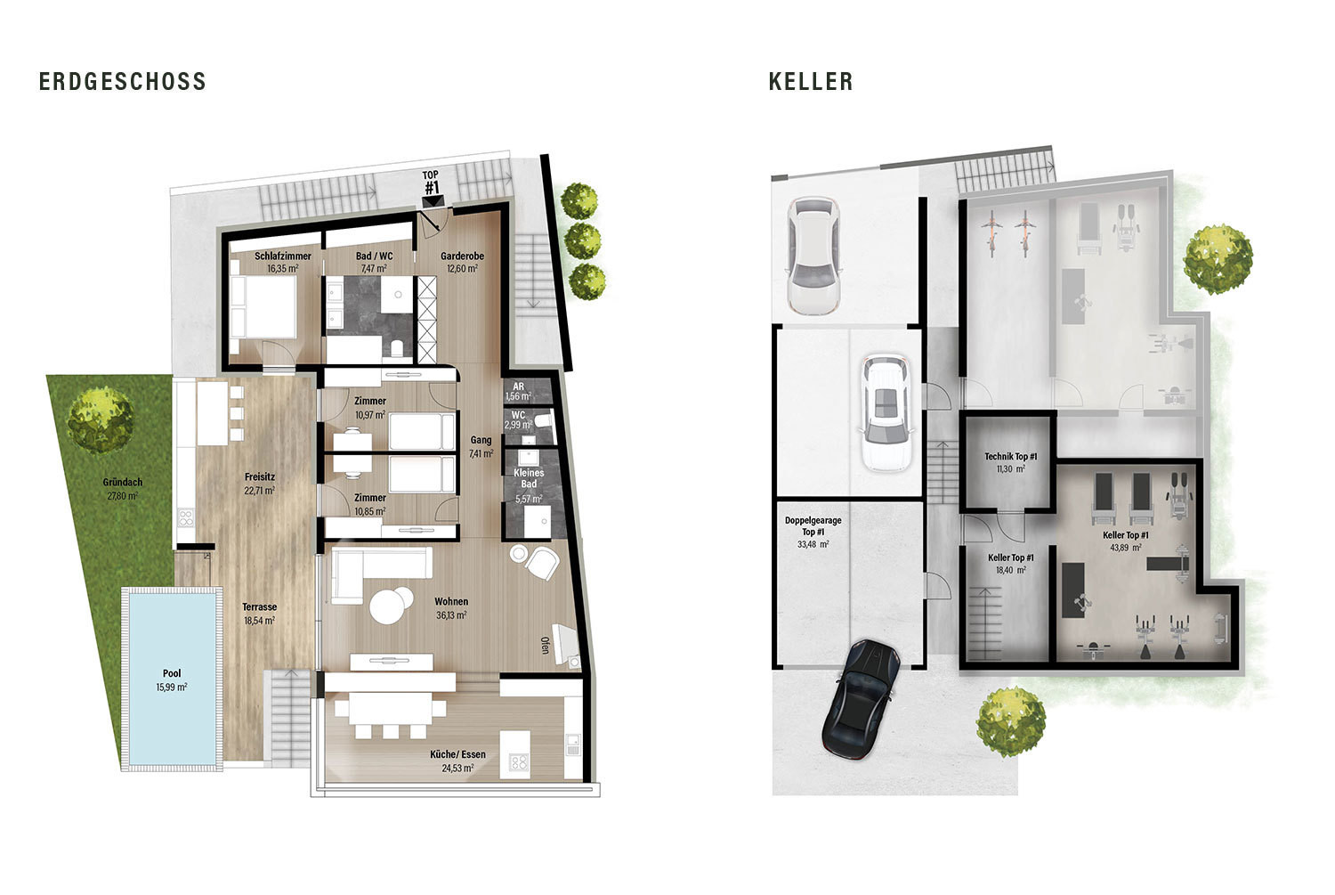 Ein großzügiger Keller mit Doppelgarage rundet das Wohnerlebnis im INNfinity #one ab.