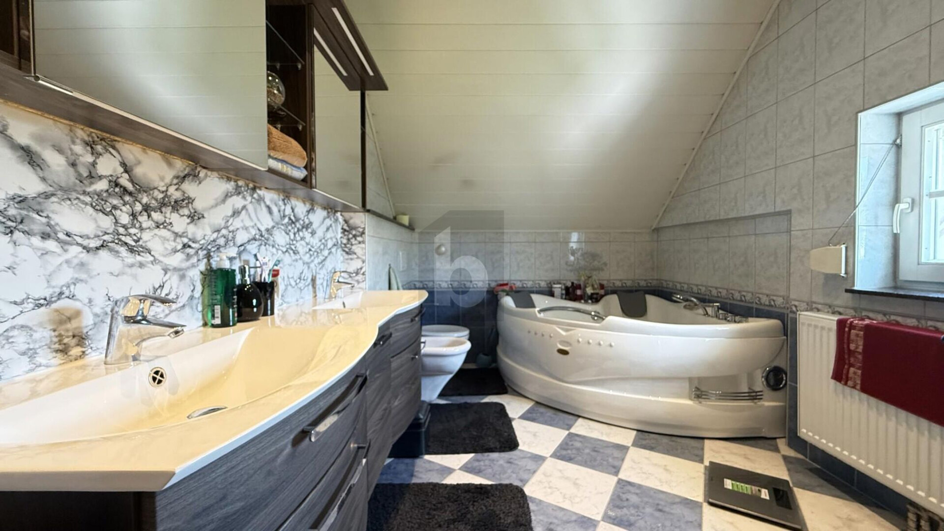 - großes Badezimmer mit Whirlpoolwanne