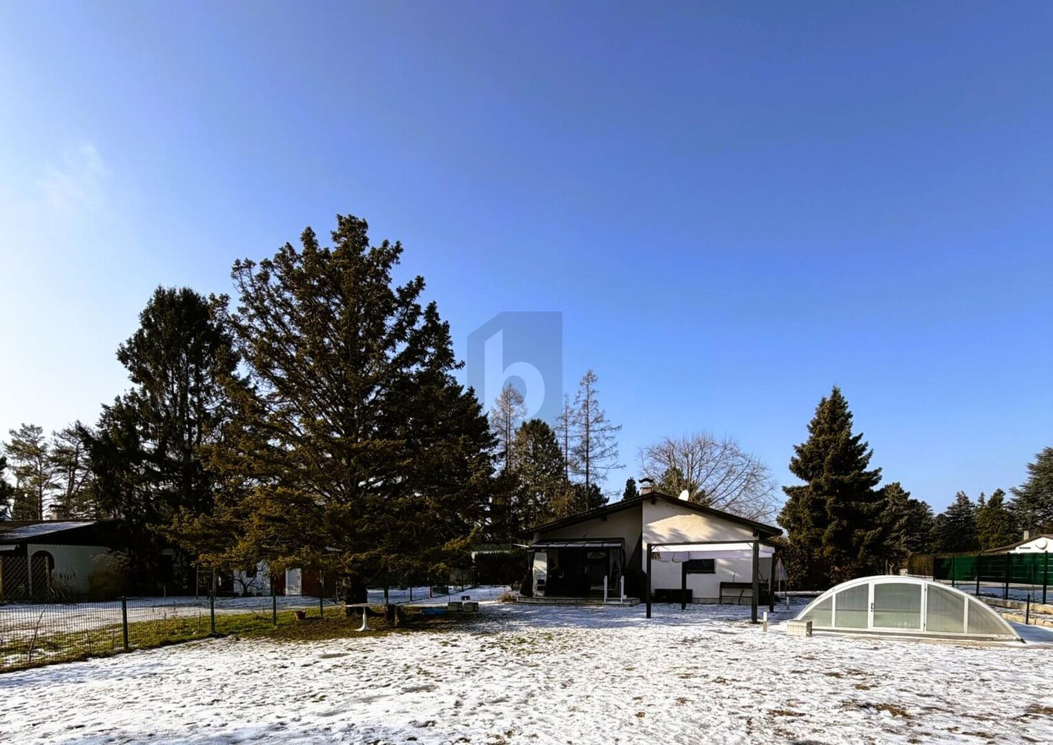 Dieser gepflegte Bungalow mit Natursteinboden bietet mit dem gemeinsamen Wohn-Essbereich, der modernen Küche und dem offenem Kamin eine gemütliche Atmosphäre. Die überdachte Terrasse mit einem zweiten offenen Kamin lädt zum Entspannen ein. Der beheizbare Pool mit Salzwasseranlage und der weitläufige Garten mit Bewässerungsanlage bieten Erholung pur. Ideal für Naturliebhaber, die das Leben im Grünen genießen möchten.