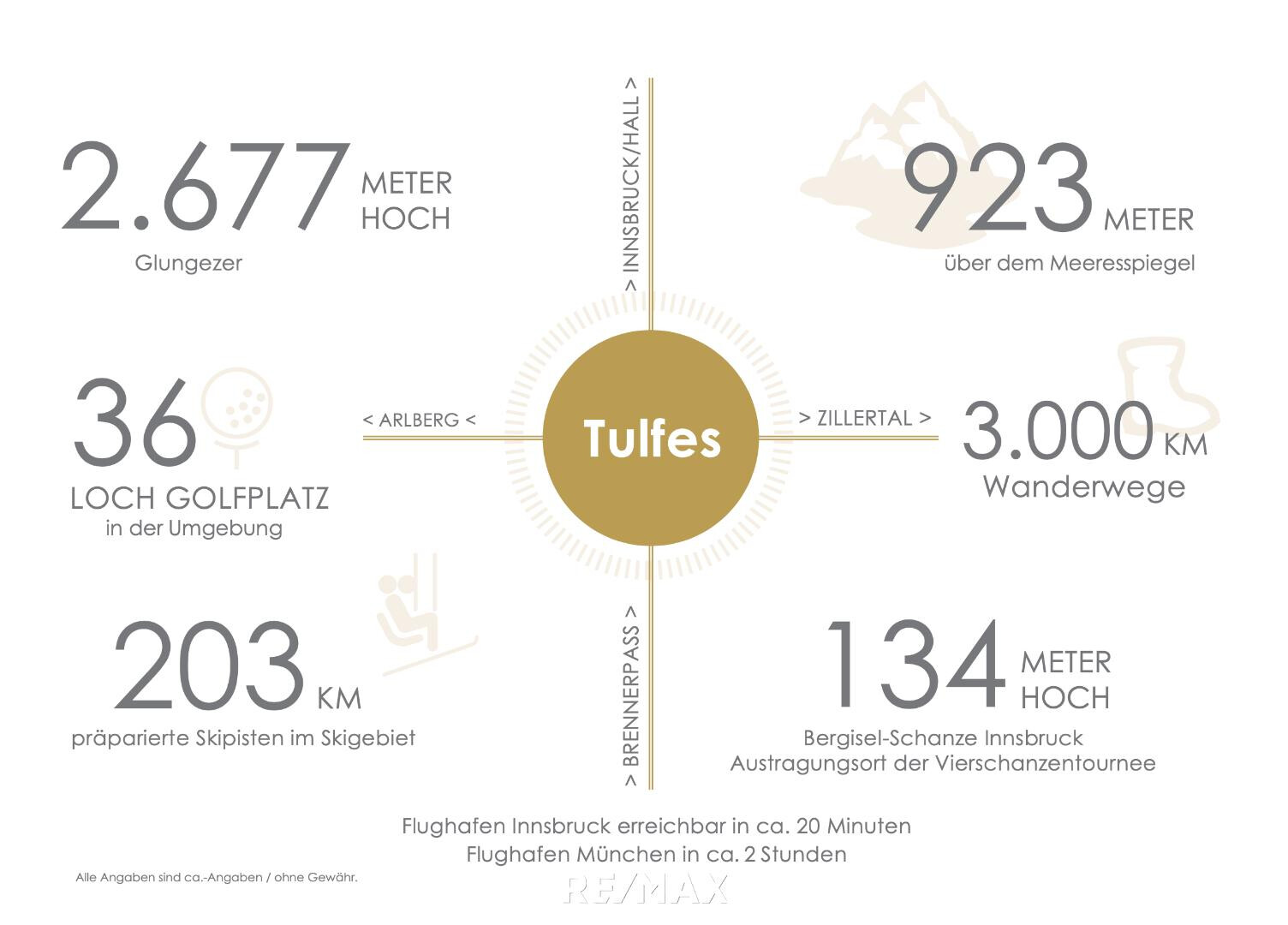 Die Lage am Fuße des Glungezers verbindet Ruhe und Natur mit einer schnellen Erreichbarkeit von Innsbruck. Kindergarten, Volksschule und ein Gesundheitszentrum befinden sich direkt im Ort, die Stadt ist in nur etwa 15 Minuten erreichbar.