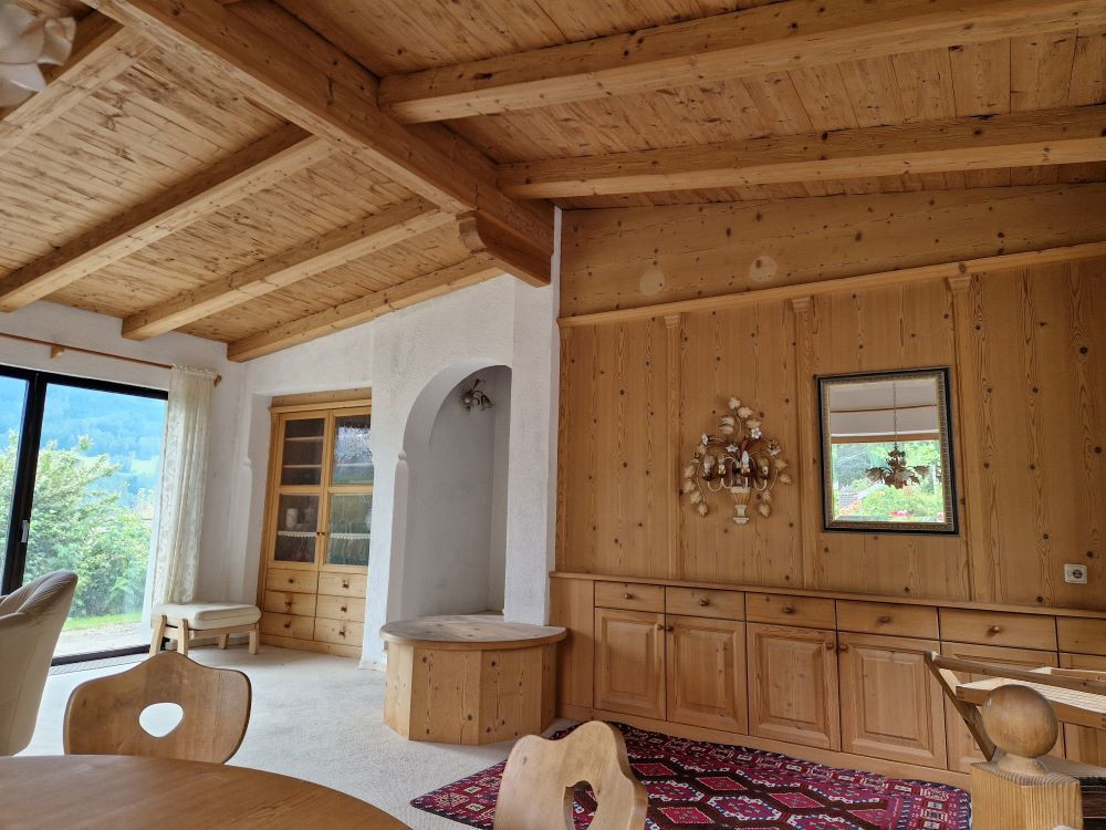 Das Gebäude wurde in den 70er Jahren nach den Plänen eines renommierten Architekten als Doppelhaus errichtet und in den 90ern wurden im Innenbereich einige Adaptionen wie Fußbodenheizungseinbau, neuer Kachelofen, Veränderung der Raumaufteilung udgl. vorgenommen. Dabei wurden beide Gebäudehälften zu einer Wohneinheit zusammengeführt, wobei die Möglichkeit für einen nochmaligen Umbau zu einem Zweifamilienhaus gegeben ist.