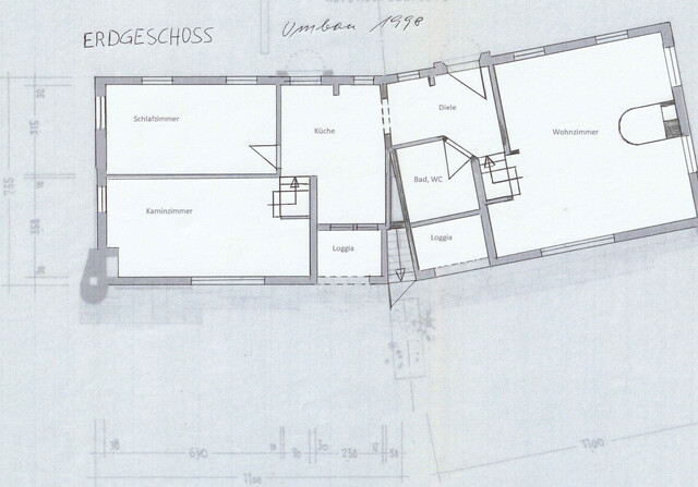 - EG: Wohnzimmer, Diele, Bad mit WC, Küche, Schlafzimmer, Kaminzimmer