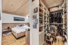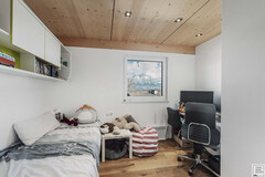 Im Obergeschoss stehen insgesamt vier Schlafzimmer zur Verfügung. Zwei Zimmer sind südseitig ausgerichtet und ermöglichen den direkten Zugang zum sonnigen Balkon. Das Elternschlafzimmer bietet zusätzlich einen begehbaren Kleiderschrank, der viel Stauraum schafft.