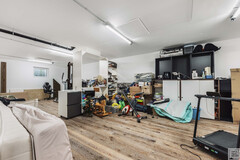 Der großzügige Keller bietet vielseitige Nutzungsmöglichkeiten, etwa als Hobbyraum, Fitnessbereich oder zusätzlichen Stauraum. Auch hier wurde auf hochwertige Materialien wie Echtholz-Landhausdielen und Fliesenböden geachtet.