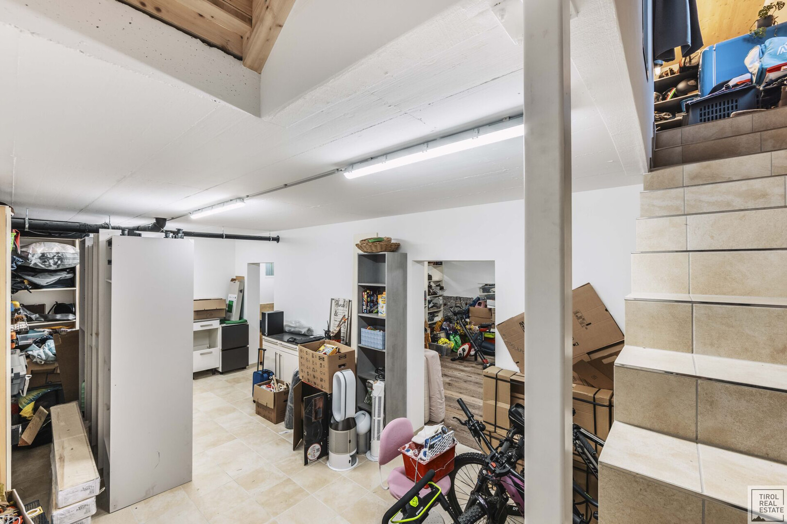 Das Erdgeschoss wird durch einen praktischen Abstellraum mit direktem Ausgang ins Freie sowie den Zugang zum großzügigen Keller ergänzt.