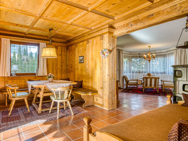 befindet sich das Wohnzimmer mit angrenzender Holzstube und dem Zugang auf die südliche