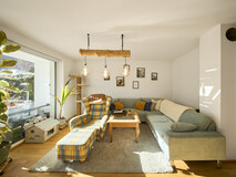 Wir freuen uns, Ihnen hier eine sehr nette, helle, freundliche Doppelhaushälfte am Tor zum Karwendel anbieten zu können. Ruhig und doch zentral gelegen, stehen Ihnen auf drei Ebenen knapp 140 m² für gemütliches, modernes und fröhliches Wohnen auf drei Ebenen zur Verfügung. Zusätzlichen Freiraum finden Sie auf drei sonnigen Terrassen (33 m²) und im hübschen kleinen Garten (88 m²). Über den Windfang mit separatem Gäste-WC, gelangt man in den lichten Wohnbereich und die schöne offene Küche mit Essbereich, sogar eine eigene Speis steht Ihnen zur Verfügung. Mittig ist geschickt die Treppe und ein schöner offener Kamin (Speicherstein) zentral situiert. Beide Seiten führen zum vorderen Garten und Terrasse und auch zum rückseitigen Garten mit Terrasse. So ist diese Gartenebene nicht nur großzügig, transparent und lichtdurchflutet, sondern auch immer mit Gartenflächen und sonnigem hübschen Außenbereichen erweitert. In der oberen Ebene befinden sich drei Schlafzimmer, davon der Masterbedroom mit Ankleide en suite. Nach vorne hinaus befinden sich zwei Zimmer, die zwei Kindern herrliches Aufwachsen auf dem Bergland bieten, oder natürlich auch ein perfektes Büro sein könnten. Aber Achtung, der traumhafte Blick ins Karwendel und die ganztägig strahlende Sonne machen es einem nicht leicht, lange am Schreibtisch zu sitzen. Ein großes Bad mit Wanne und Dusche, sowie eine sehr schöne dritte Terrasse rundet diese obere Ebene ab. Geheizt wird modern und effizient mit Luftwärmepumpe und Fußbodenheizung. Die untere Ebene ist ebenfalls mit Fußbodenheizung ausgestattet und bietet drei weitere Räume (aktuell einen Fitnessraum, ein Gästezimmer und einen Stauraum), Platz unter der Treppe und einen Technikraum mit Waschmaschine und Trockner. Drei PKW finden vor dem Haus leicht Platz, teilweise sogar unter Dach (Carport), wie auch Ihre Gartengeräte und das Holz für Ihren schönen offenen Kamin. Hier ist wirklich nettes und fröhliches Wohnen in schönster und vielseitiger Natur und doch unweit zu Garmisch, Mittenwald und Innsbruck gegeben und sogar mit dem Zug erreichbar. Worauf warten Sie noch? Wir freuen uns auf Sie!
