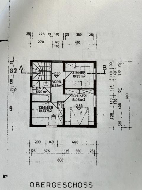 Obergeschoss: 1 Badezimmer mit Fenster, Badewanne sowie Toilette, 3 Schlafzimmer.