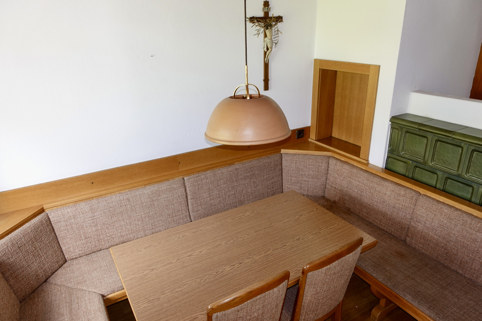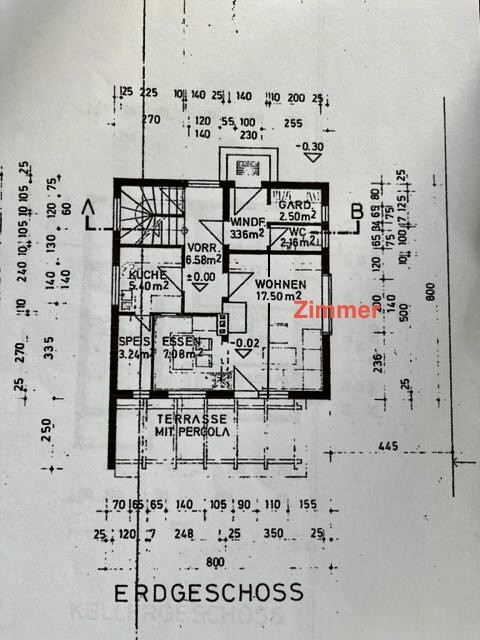Erdgeschoss: 1 Vorraum, 1 extra Toilette, 1 Küche mit Speisekammer, 1 Wohnzimmer mit Sitzecke und Garten-Terrassenzugang.