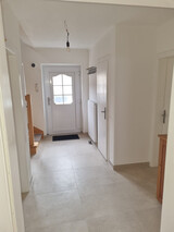 Im Erdgeschoss befindet sich eine Küche (mit Eckbank), ein gemütliches Esszimmer (mit Ofen), ein Wohnzimmer und ein Bad mit Dusche. Im Obergeschoss befinden sich drei Schlafzimmer und ein weiteres WC. Darüber hinaus verfügt das Einfamilienhaus über einen Balkon, einen großzügigen Garten sowie mehrere Abstellplätze (im Freien und Caport).