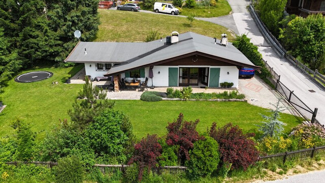 Dieses charmante Bungalowhaus wurde 1979 errichtet, 1994 durch einen Zubau erweitert und zuletzt 2014 umfassend modernisiert. Auf ca. 107 m² Wohnfläche bietet das Haus vier gemütliche Schlafzimmer, drei geschmackvoll sanierte Badezimmer sowie einen lichtdurchfluteten Wohnbereich mit offenem Kamin und herrlichem Bergblick.