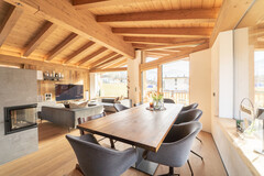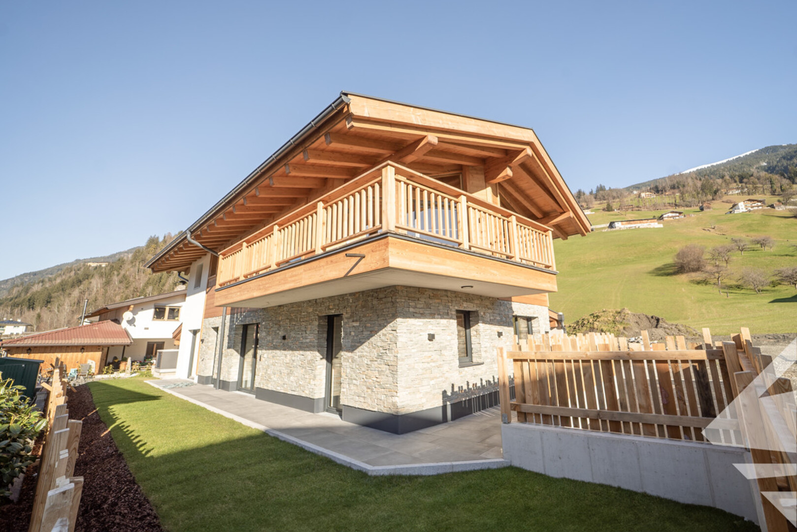 Das Chalet wurde auf der Sonnenseite des Zillertals in der Gemeinde Stumm errichtet. Die Wohn- und Schlafbereiche sind Richtung Westen bzw. Osten und Süden ausgerichtet. Die Zufahrt führt an einem Besucherparkplatz vorbei und endet unter einem großzügigen Carport mit Platz für 3 Autos. Das neue Zuhause teilt sich auf zwei Ebenen mit Erdgeschoß und Obergeschoß auf. Der Schlafbereich und die zwei Badezimmern inkl. WC liegen im Erdgeschoß. Der Wohn- und Essbereich im Obergeschoß überzeugt mit seinen deckenhohen Glaselementen und sorgt für ein lichtdurchflutetes und offenes Raumgefühl. Zusätzliche schaffen der Sichtdachstuhl, sowie der offene Kamin und das Beleuchtungskonzept eine einmalige Wohlfühlatmosphäre. Zwei besondere Highlights sind die südlich gelegene Terrasse und eine Tiroler Holzsauna mit anschließendem Ruheraum.