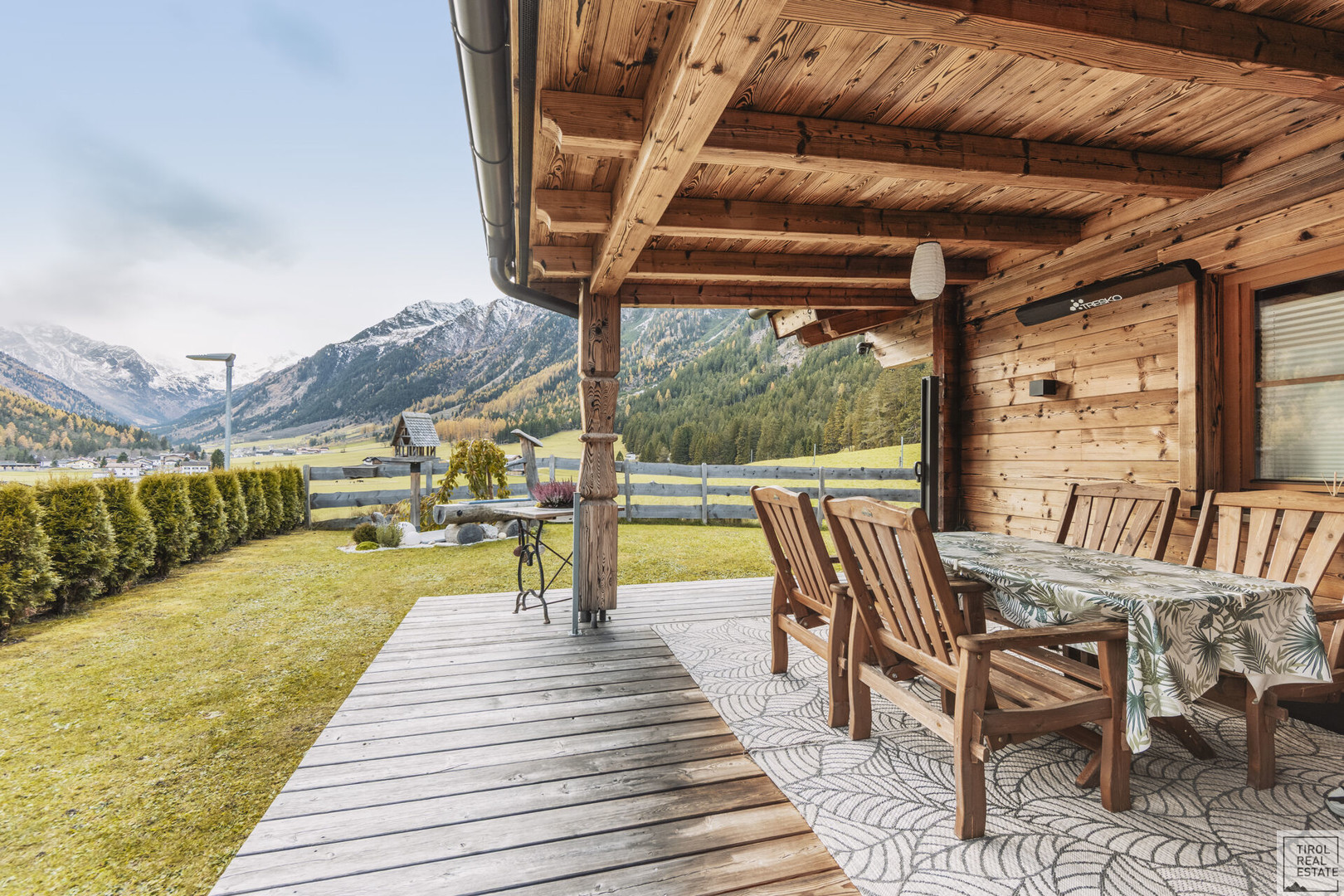 Das rund 486 m² große Grundstück bietet sonnige Freiflächen, viel Privatsphäre und einen beeindruckenden Ausblick auf die Tiroler Bergwelt.