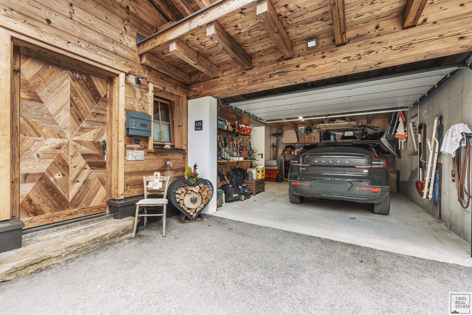 Zum Chalet gehören außerdem eine Garage (28 m²), ein Carport sowie zwei Freiplätze.