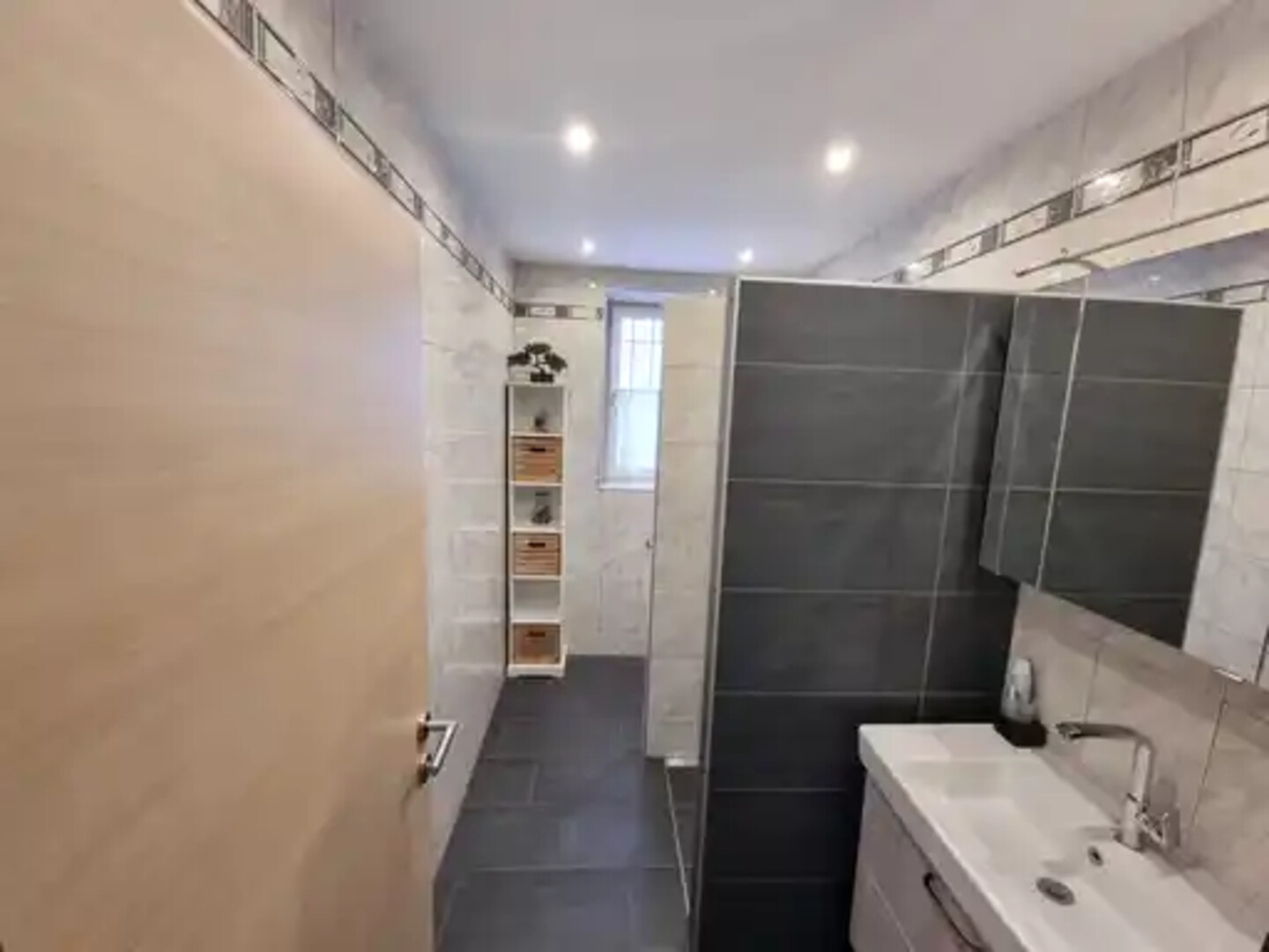 - Badezimmer mit Dusche, Waschbecken, WC und Bidet