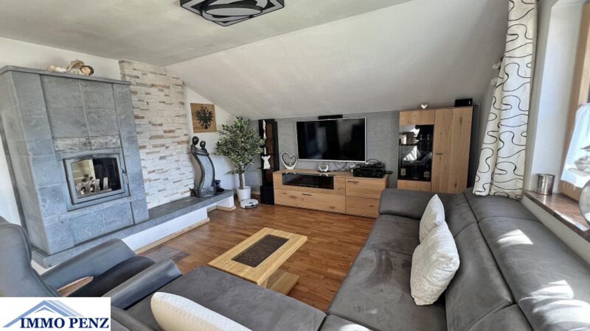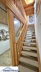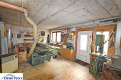Die Wohnung im Obergeschoss gliedert sich in einen großzügigen Wohn- und Kochbereich, drei Zimmer (eines davon mit begehbarem Kleiderschrank), ein Badezimmer, ein WC und den Flur. Weiters befindet sich hier eine geräumige Werkstatt, die das Herz jedes Bastlers höherschlagen lässt – auch ein Umbau in zwei zusätzliche Zimmer wäre möglich.