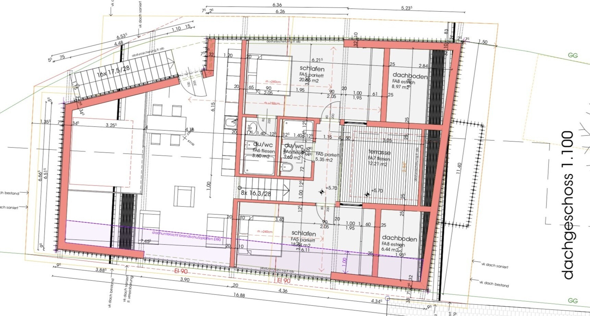 Die beiden Wohnungen erstrecken sich zweigeschoßig, einmal über 95 m² Wohnfläche und