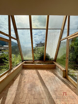 Ein besonderes Highlight bildet der helle, hohe Wintergarten, der den Wohnbereich erweitert und einen direkten Zugang zum südlich ausgerichteten Garten ermöglicht. Der Außenbereich überzeugt durch seine ruhige Lage und ganztägige Besonnung und lässt sich ideal mit einer Terrasse gestalten – perfekt für angenehme Stunden der Entspannung im Freien.