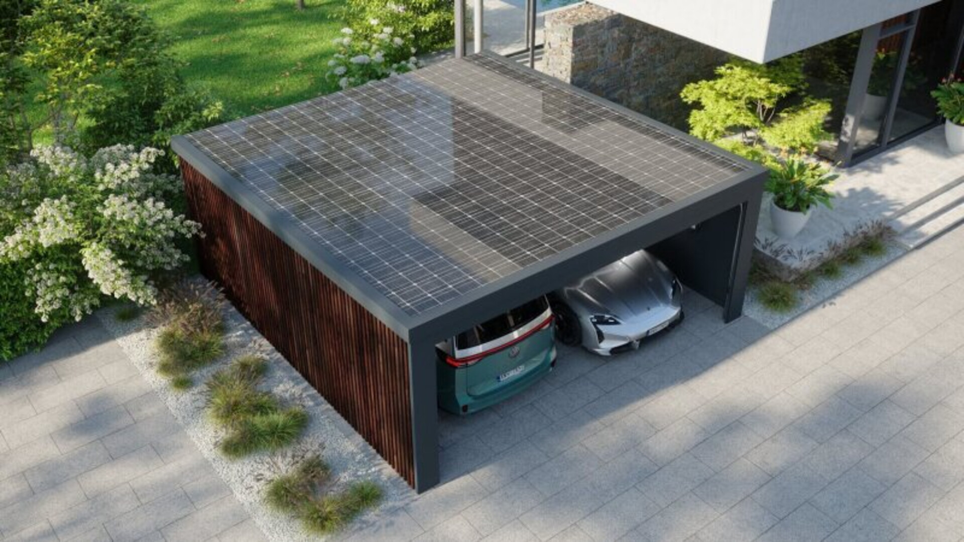 Neben dem Modell Deluxe Dekor stehen Ihnen aktuell über 20 verschiedene Varianten und Designs zur Auswahl – von Holzoptik über moderne HPL-Verkleidungen bis hin zu begrünten Fassaden. Für besonders preisbewusste Käufer gibt es außerdem das Modell „Naked – DIY“, eine reine Doppelgarage ohne Photovoltaik, die jederzeit individuell erweitert werden kann.