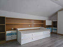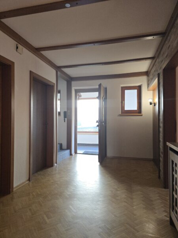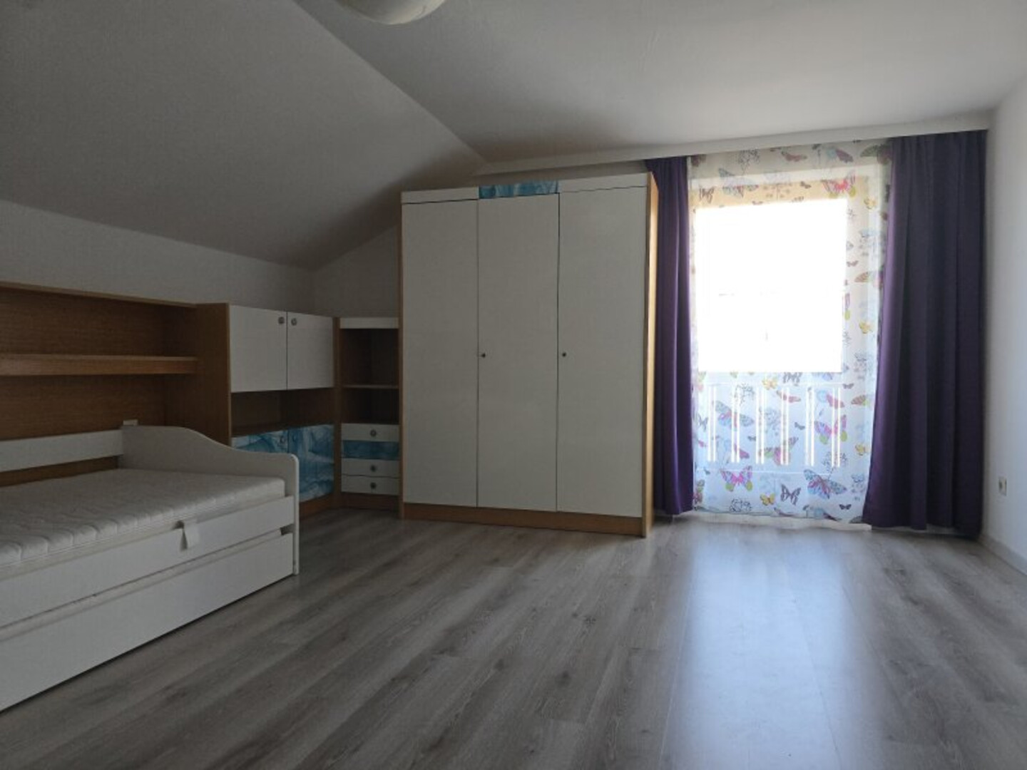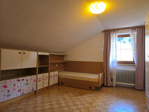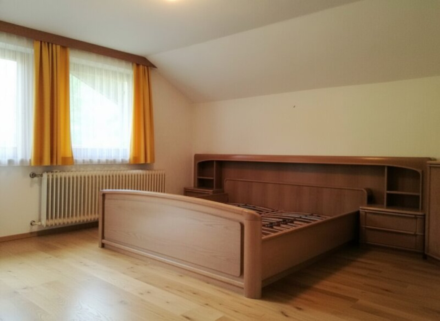 Im Obergeschoß finden sich das Elternschlafzimmer mit Ausgang zum Südbalkon, 2 Kinderzimmer (das nordseitige Zimmer mit Ausgang zum Nordbalkon) und das Badezimmer mit Waschmaschinenanschluß.