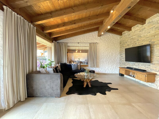 •OG: Wohn-/Ess-/Kochbereich mit Kachelofen, Zugang zum Balkon & großer Südterrasse