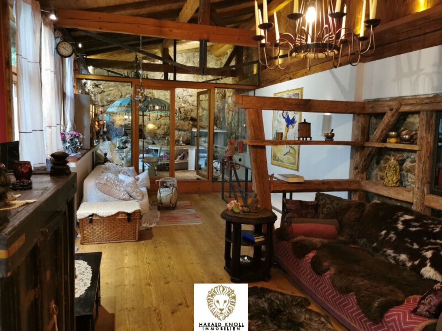 Im Obergeschoß bietet der großzügige Wohnraum mit Kaminfeuer sowie der herrliche Wintergarten mit Fels, der auch als Terrasse nutzbar ist ein tolles Klima. Weiters befindet sich ein großzügiges Schlafzimmer mit Bad und WC auf dieser Ebene.