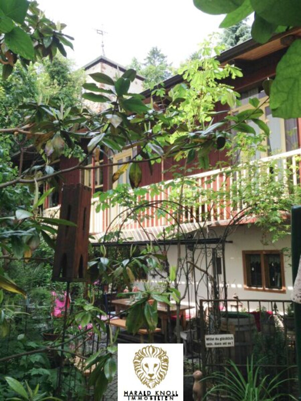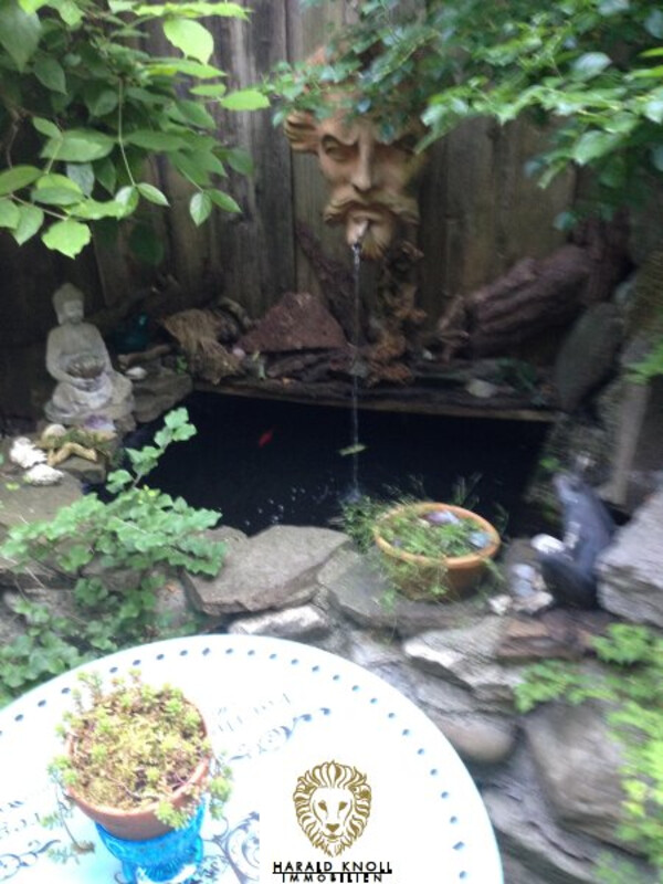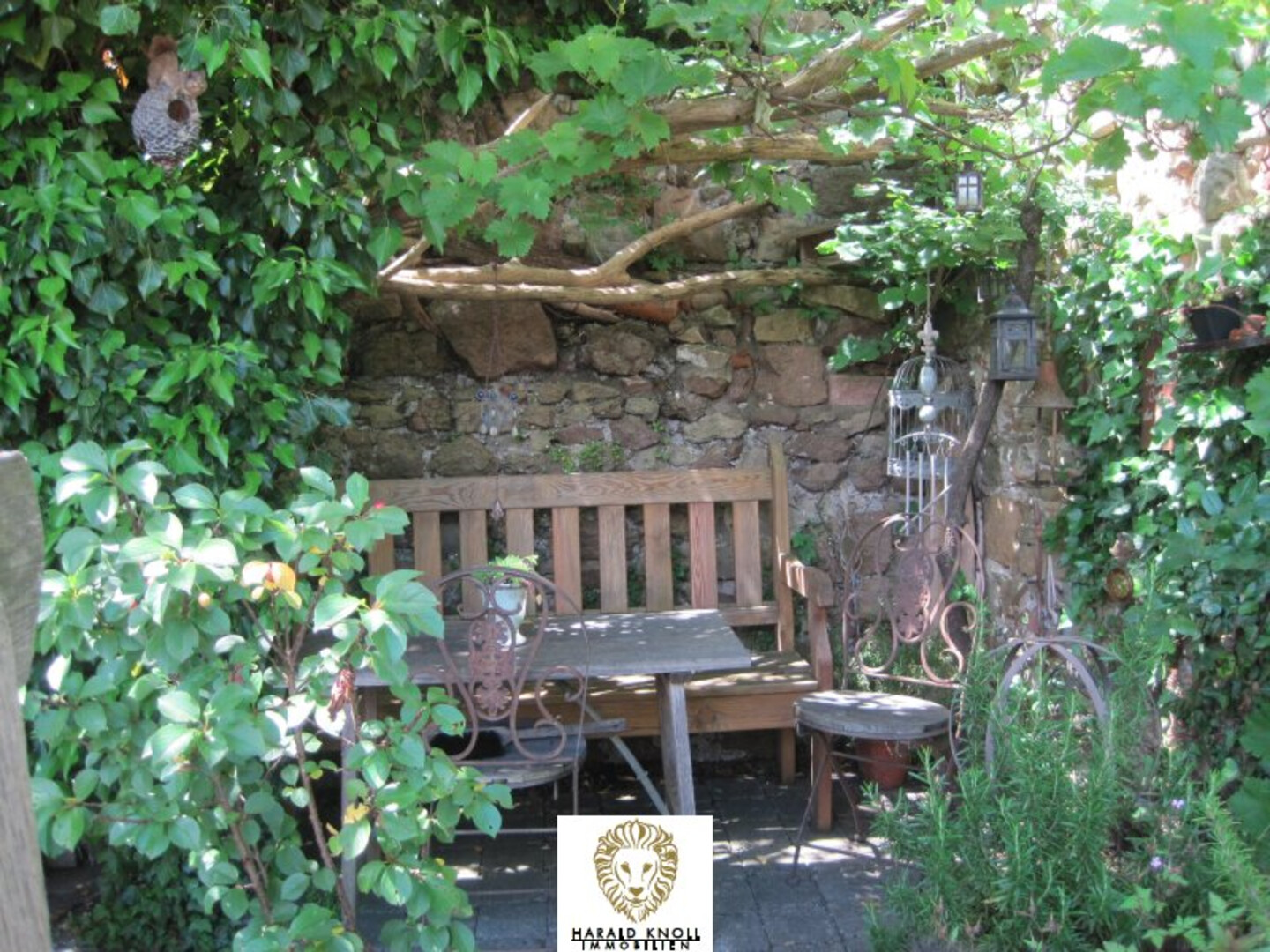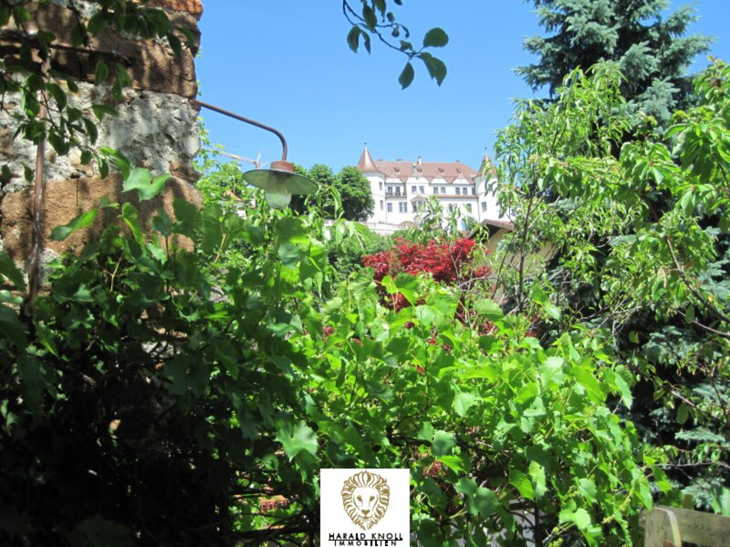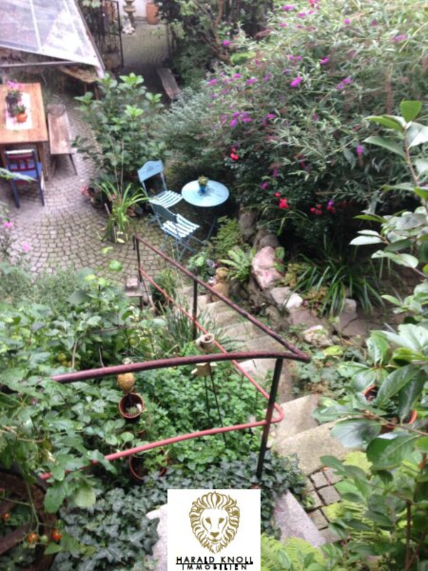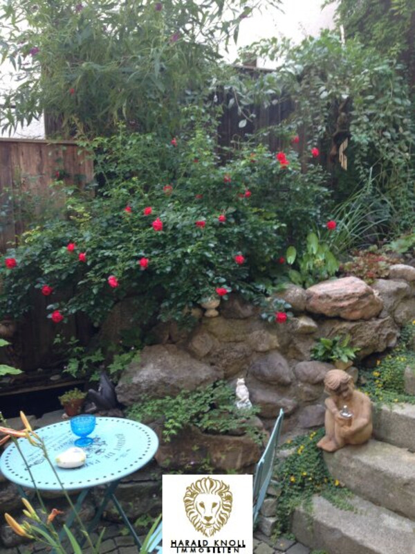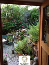 Ein besonderes Erlebnis bietet auch der ca. 70 qm große wunderschön angelegte Garten mit Stufen auf die höher gelegene Terrasse mit Blick auf das Schloss.
